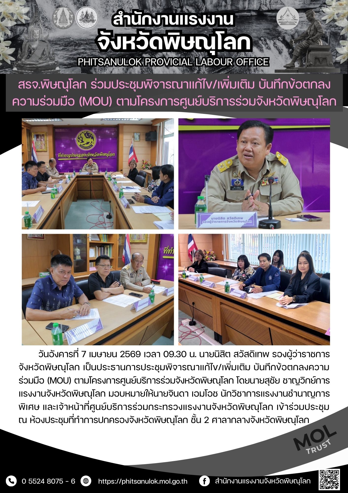 สรจ.พิษณุโลก ร่วมประชุมพิจารณาแก้ไข/เพิ่มเติม บันทึกข้อตกลง ความร่วมมือ (MOU) ตามโครงการศูนย์บริการร่วมจังหวัดพิษณุโลก