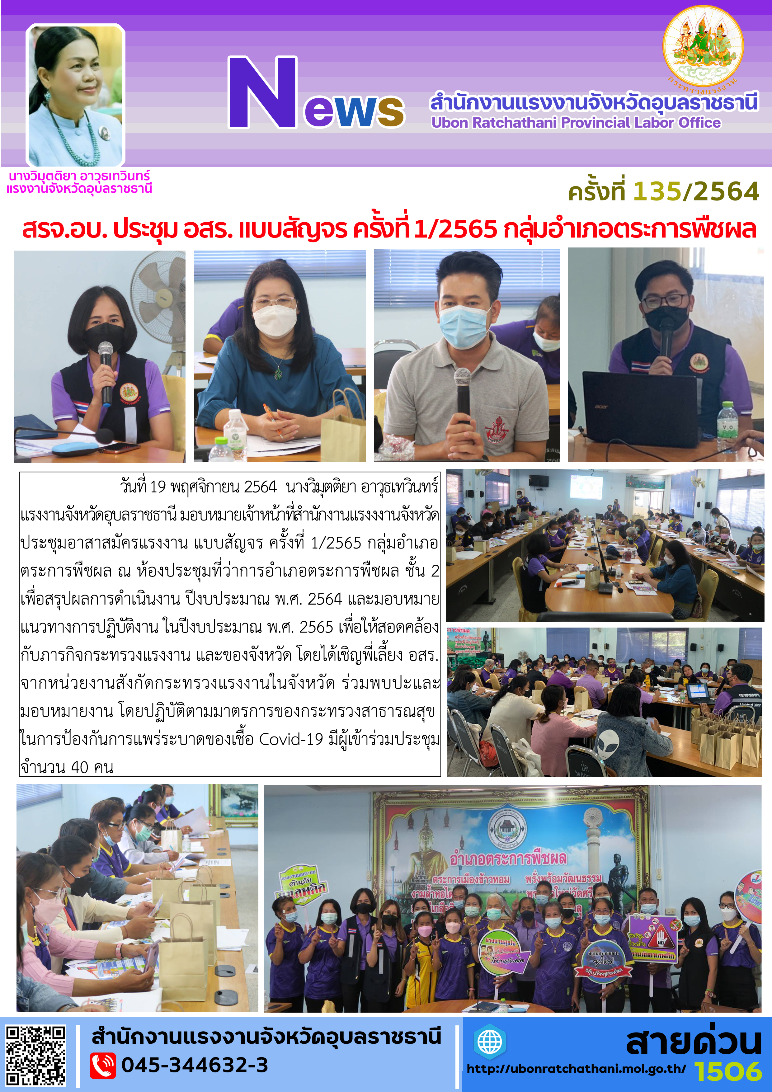สรจ.อุบลราชธานี ขับเคลื่อนงาน อาสาสมัครแรงงาน