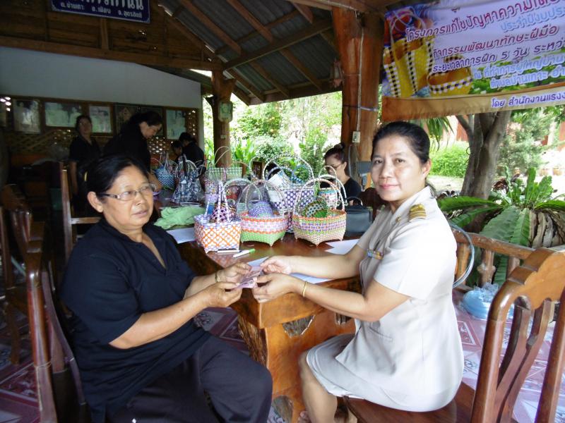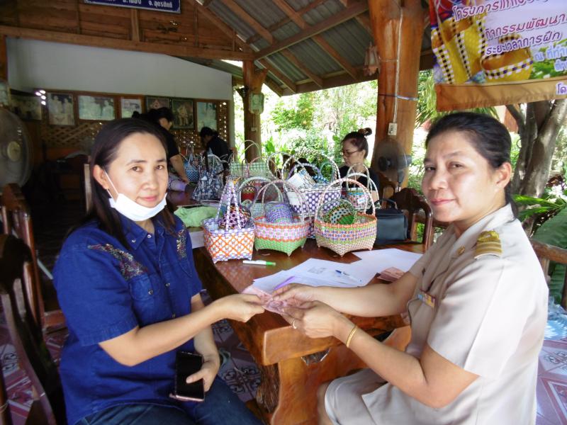 วันจันทร์ที่ 10 มิถุนายน 2562 เวลา 10.30 น. นางสาวกฤษณา เขียวจันทร์แสง นักวิชาการแรงงานชำนาญการ รักษาราชการแทน แรงงานจังหวัดอุตรดิตถ์ มอบหมายให้นางสุภาพร อ่ำเมือง พนักงานธุรการ ส.4 ปิดฝึกโครงการแก้ไขปัญหาความเดือดร้อนด้านอาชีพ ประจำปีงบประมาณ พ.ศ.2562 จังหวัดอุตรดิตถ์ กิจกรรมพัฒนาทักษะฝีมือ หลักสูตร จักสานเส้นพลาสติก (ตะกร้า) จำนวน 20 คน ณ ที่ทำการผู้ใหญ่บ้าน ม.5 บ้านหนองคัน ต.บ้านเกาะ อ.เมืองอุตรดิตถ์ ผู้เข้ารับการฝึกมีรายได้เฉลี่ยคนละ 600 บาท