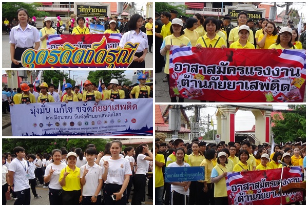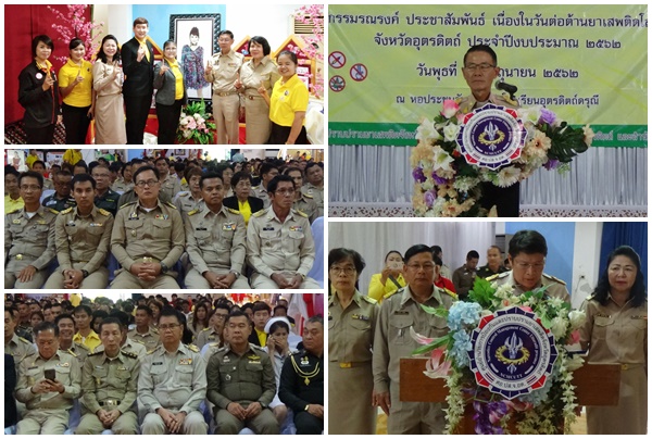 วันพุธที่ 26 มิถุนายน 2562 เวลา 09.09 น. นายธนากร อึ้งจิตรไพศาล ผู้ว่าราชการจังหวัดอุตรดิตถ์ เป็นประธานพิธีเปิดกิจกรรมเดินรณรงค์ประชาสัมพันธ์เนื่องในวันต่อต้านยาเสพติดโลก (26 มิถุนายน) จังหวัดอุตรดิตถ์ ประจำปี 2562 ภายใต้แนวคิด “มุ่งมั่น แก้ไข ขจัดภัยยาเสพติด” โดยมีนางสาวกฤษณา เขียวจันทร์แสง นักวิชาการแรงงานชำนาญการ รักษาราชการแทน แรงงานจังหวัดอุตรดิตถ์ พร้อมด้วย เจ้าหน้าที่หน่วยงานสังกัดกระทรวงแรงงาน อาสาสมัครแรงงานและเครือข่ายอาสาสมัครแรงงาน เข้าร่วมกิจกรรมดังกล่าว ณ บริเวณหน้าสถานีรถไฟอุตรดิตถ์ และหอประชุมจันทร์นารี โรงเรียนอุตรดิตถ์ดรุณี