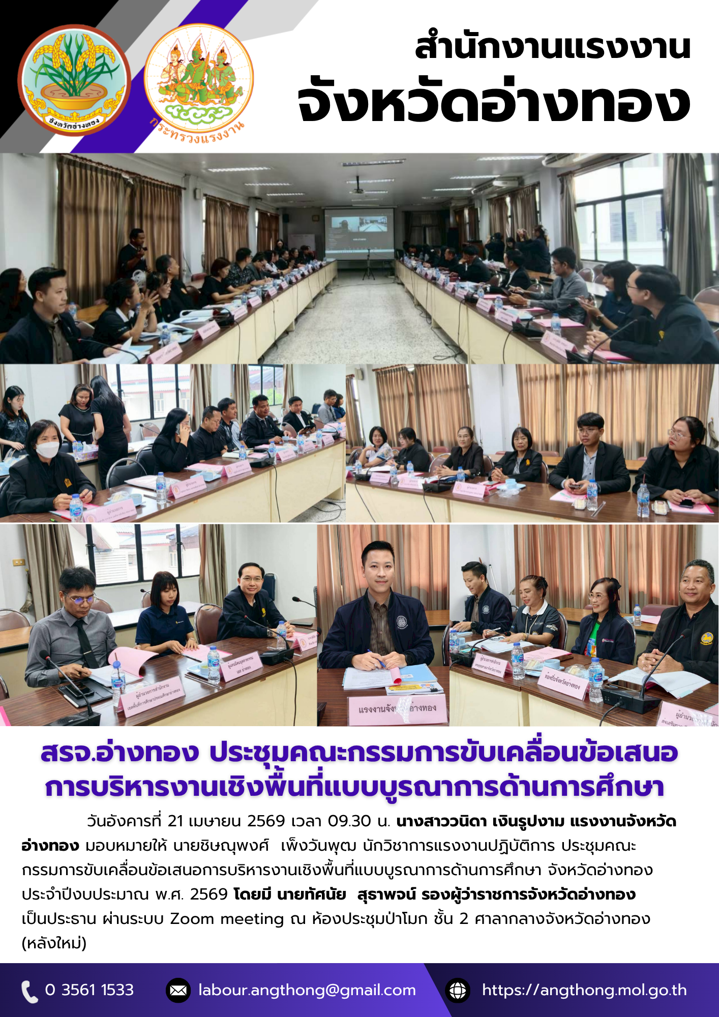 สรจ.อ่างทอง ประชุมคณะกรรมการขับเคลื่อนข้อเสนอ การบริหารงานเชิงพื้นที่แบบบูรณาการด้านการศึกษา