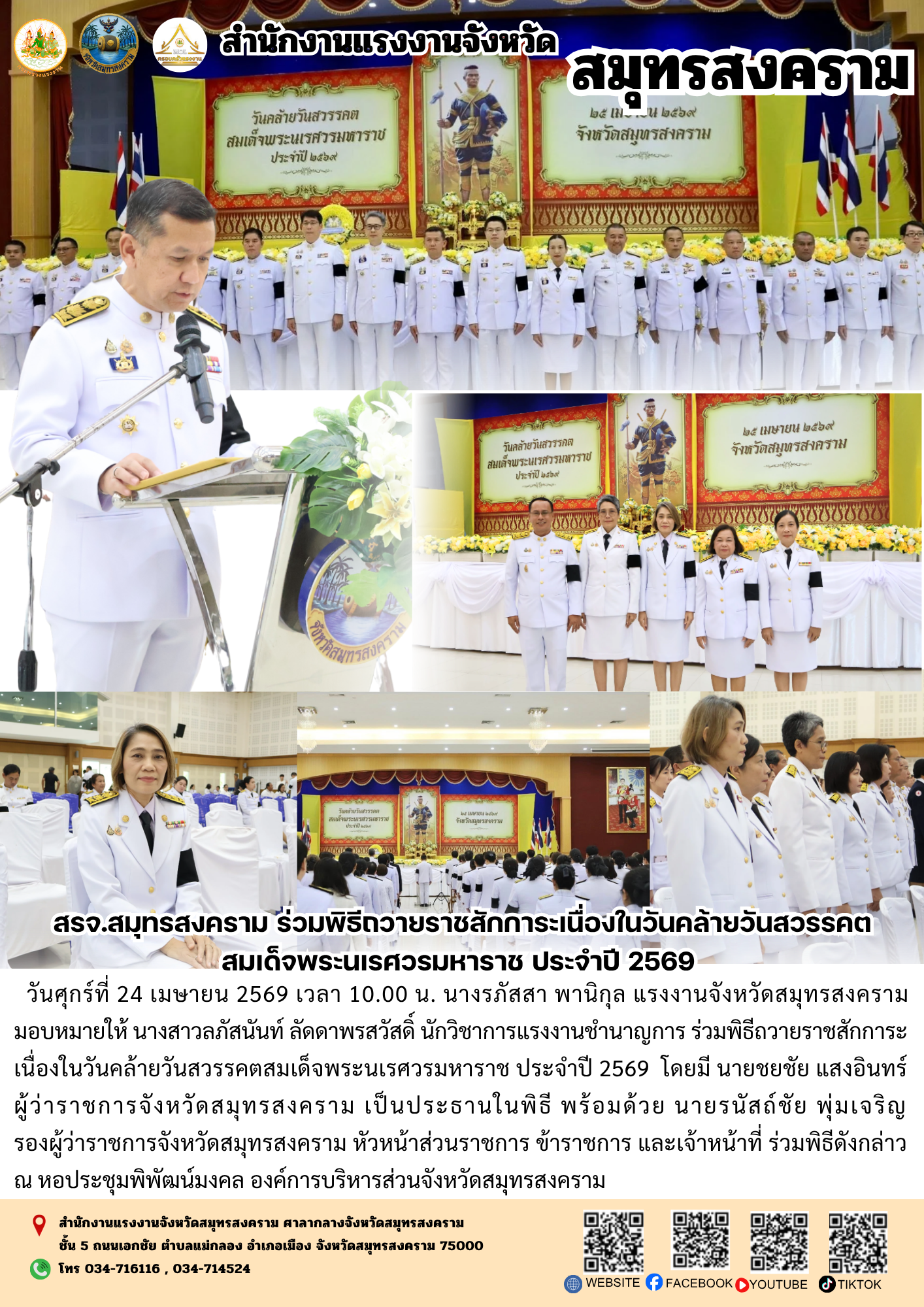 สรจ.สมุทรสงคราม ร่วมพิธีถวายราชสักการะเนื่องในวันคล้ายวันสวรรคต สมเด็จพระนเรศวรมหาราช ประจำปี 2569