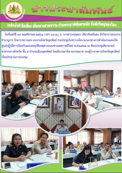 สรจ.อุตรดิตถ์ ร่วมประชุมรับทราบนโยบาย/แนวทางการดำเนินงานและเปิดศูนย์ปฏิบัติการป้องกันและลดอุบัติเหตุทางถนนช่วงเทศกาลปีใหม่ พ.ศ.2562