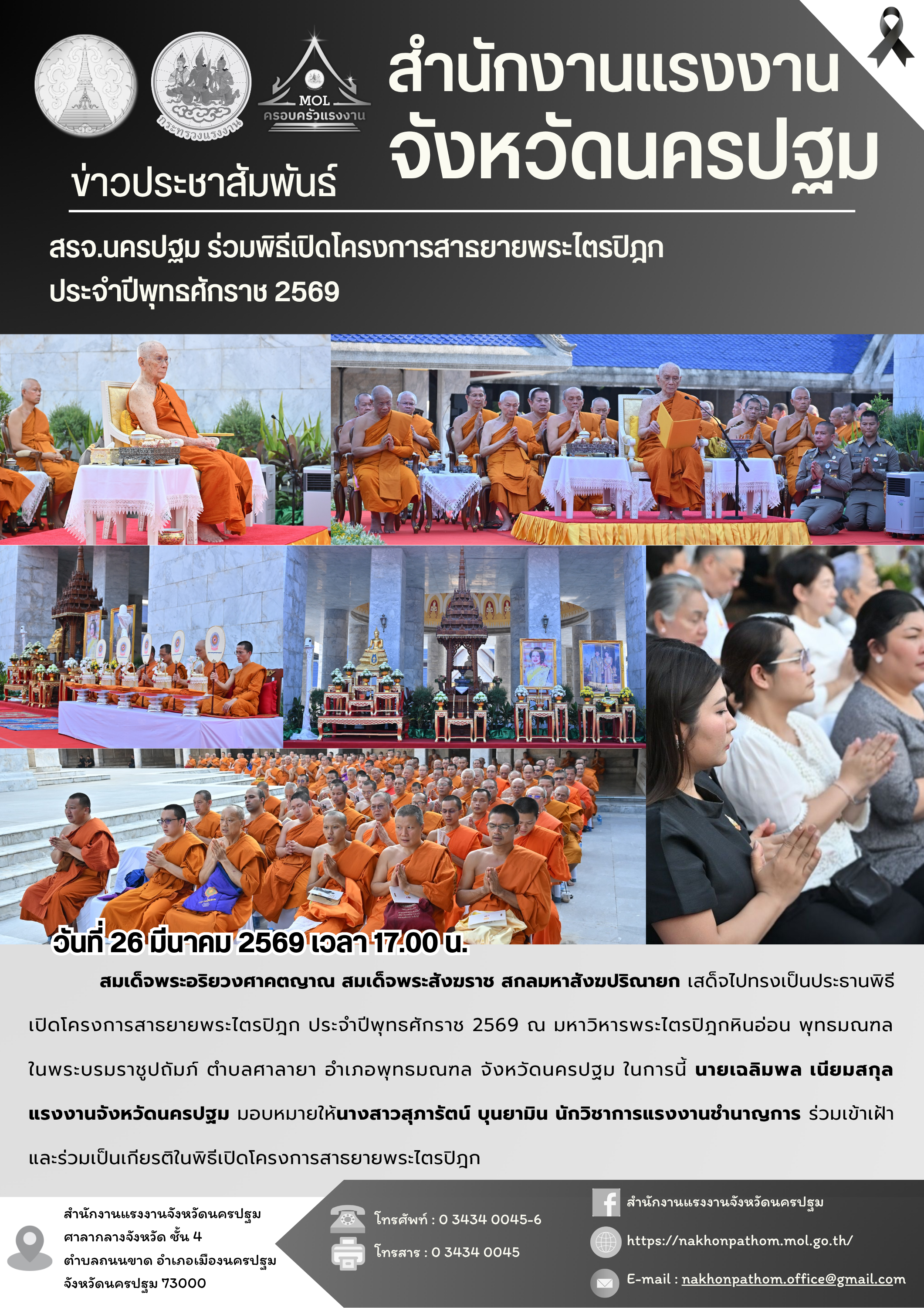 สรจ.นครปฐม ร่วมพิธีเปิดโครงการสาธยายพระไตรปิฎก ประจำปีพุทธศักราช 2569