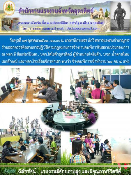 สรจ.อุตรดิตถ์ ร่วมออกตรวจติดตามการปฏิบัติตามกฏหมายการจ้างงานคนพิการในสถานประกอบการ