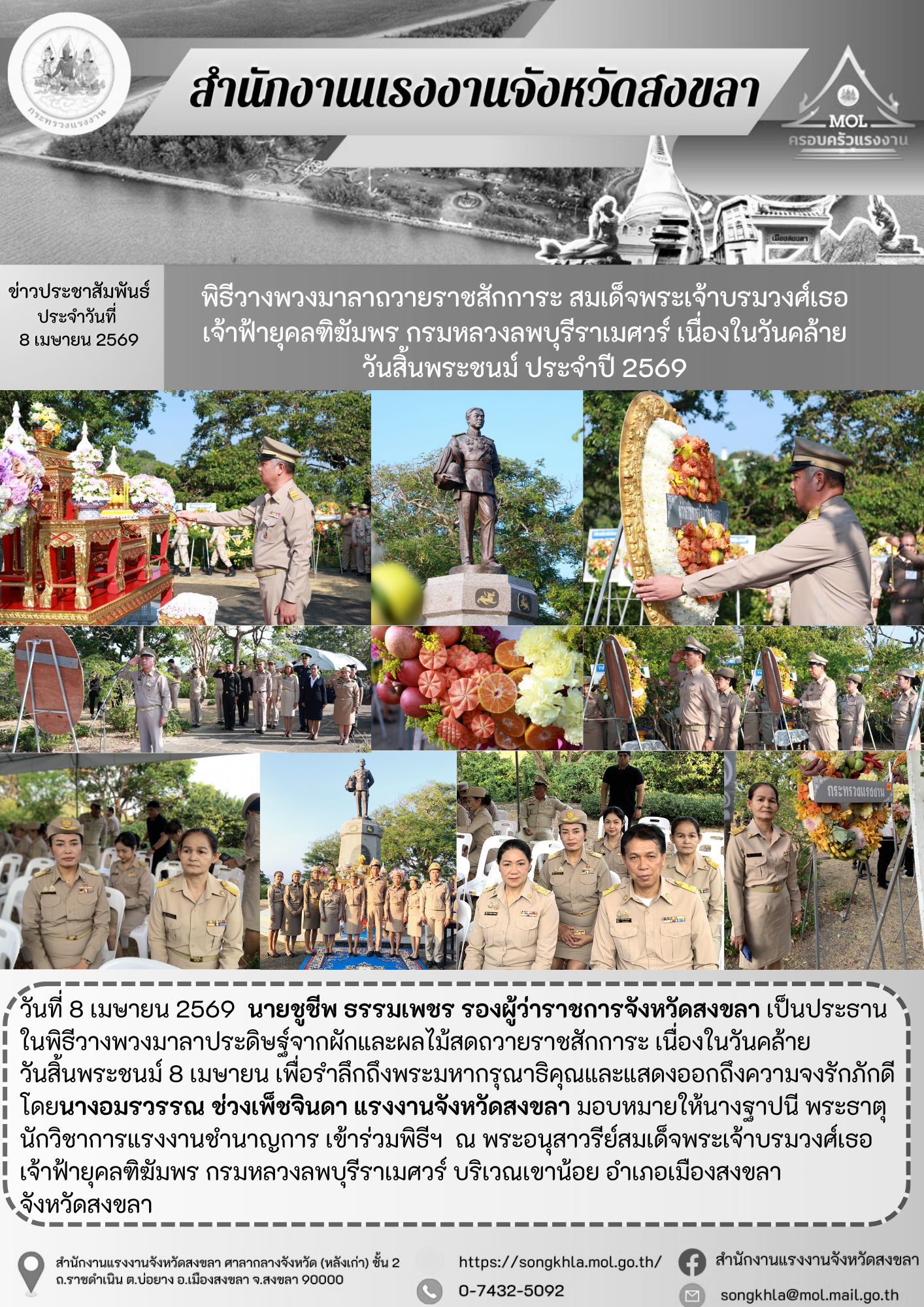 พิธีวางพวงมาลาถวายราชสักการะ สมเด็จพระเจ้าบรมวงศ์เธอ เจ้าฟ้ายุคลฑิฆัมพร กรมหลวงลพบุรีราเมศวร์ เนื่องในวันคล้าย วันสิ้นพระชนม์ ประจำปี 2569