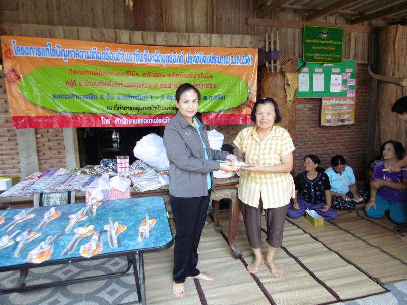 เมื่อวันศุกร์ที่ 1 มิถุนายน 2561 เวลา 10.00 น. นางสาวปาริชาติ สวนใจ แรงงานจังหวัดอุตรดิตถ์ มอบหมายนางกรนิกา เขจร นักวิชาการแรงงานชำนาญการ ลงพื้นที่เปิดฝึกกิจกรรมพัฒนาทักษะฝีมือ หลักสูตรผลิตภัณฑ์ผ้าด้นมือ ณ ที่ทำการกลุ่มทอผ้าบ้านนาไร่เดียว ม.5 ต.สองห้อง อ.ฟากท่า จ.อุตรดิตถ์ ระหว่างวันที่ 1-5 มิถุนายน 2561 จำนวน 20 คน