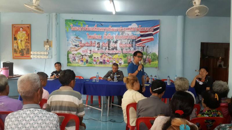 เมื่อวันอาทิตย์ที่ 17 มิถุนายน 2561 : 11.00 น. น.ส.ปาริชาติ สวนใจ แรงงานจังหวัดอุตรดิตถ์ มอบหมายนายวีระพงษ์ พิมพาเรือน เจ้าหน้าที่สำนักงานแรงงานจังหวัดอุตรดิตถ์ ลงพื้นที่ติดตามโครงการขับเคลื่อนการพัฒนาประเทศตามโครงการไทยนิยม ยั่งยืน อำเภอท่าปลา จัดเวทีครั้งที่ 4 ณ ศาลาอเนกประสงค์ หมู่ที่ 6 บ้านท่าช้าง ตำบลจริม อำเภอท่าปลา จังหวัดอุตรดิตถ์
