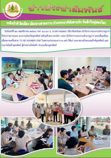 สรจ.อุตรดิตถ์ ออกเยี่ยมเยียนเพื่อขยายเครือข่าย TO BE NUMBER ONE ในสถานประกอบการ