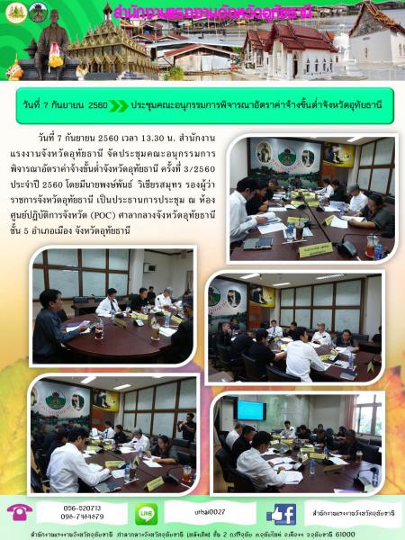 สรจ.อุทัยธานี จัดประชุมคณะอนุกรรมการพิจารณอัตราค่าจ้างขั้นต่ำจังหวัดอุทัยธานี ครั้งที่ 3/2560