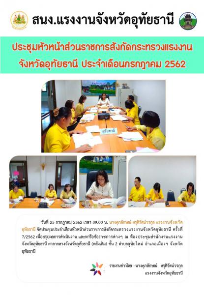 สรจ.อุทัยธานี จัดประชุมประจำเดือนหัวหน้าส่วนราชการสังกัดกระทรวงแรงงานจังหวัดอุทัยธานี เพื่อสรุปผลการดำเนินงาน และหารือข้อราชการต่างๆ ณ ห้องประชุมสำนักงานแรงงานจังหวัดอุทัยธานี