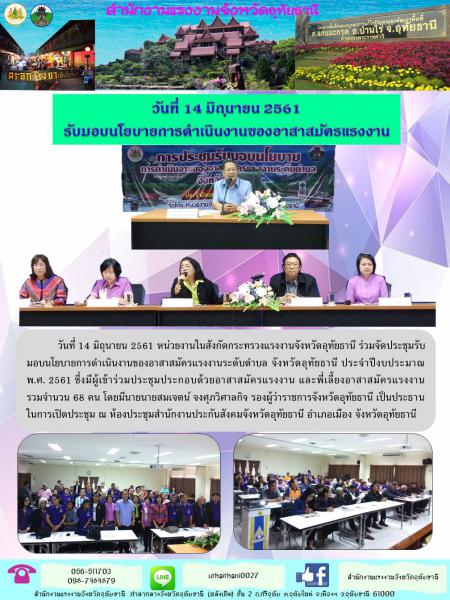 สรจ.อุทัยธานี จัดประชุมรับมอบนโยบายการดำเนินงานของอาสาสมัครแรงงานระดับตำบล