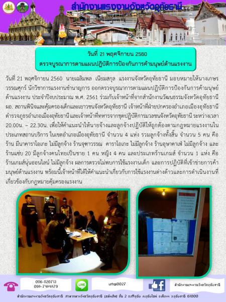 สรจ.อุทัยธานี ตรวจบูรณาการตามแผนปฏิบัติการป้องกันการค้ามนุษย์ด้านแรงงาน