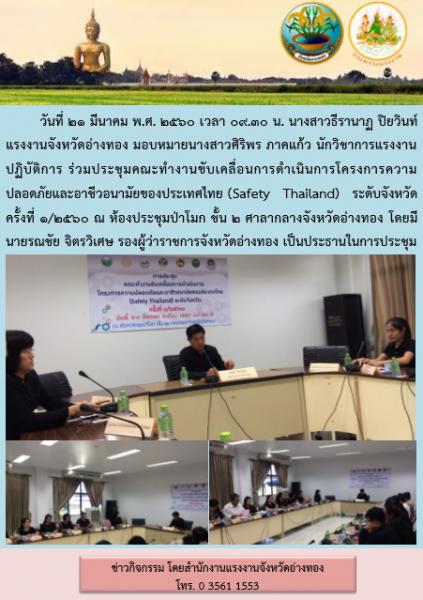 สรจ.อ่างทอง ร่วมประชุมคณะทำงานขับเคลื่อนการดำเนินการโครงการความปลอดภัยและอาชีวอนามัยของประเทศไทย (Safety Thailand) ระดับจังหวัด ครั้งที่ 1/2560