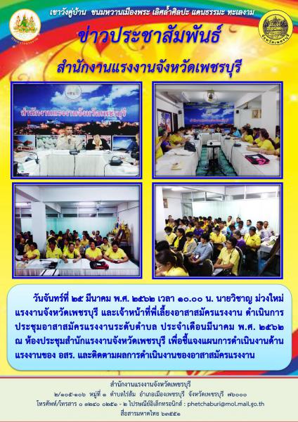 สรจ.เพชรบุรี ประชุมอาสาสมัครแรงงานระดับตำบล ประจำเดือนมีนาคม พ.ศ. 2562