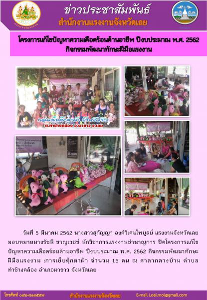 สรจ.เลย ร่วมปิดโครงการแก้ไขปัญหาความเดือดร้อนด้านอาชีพ ปีงบประมาณ พ.ศ. 2562 กิจกรรมพัฒนาทักษะฝีมือแรงงาน