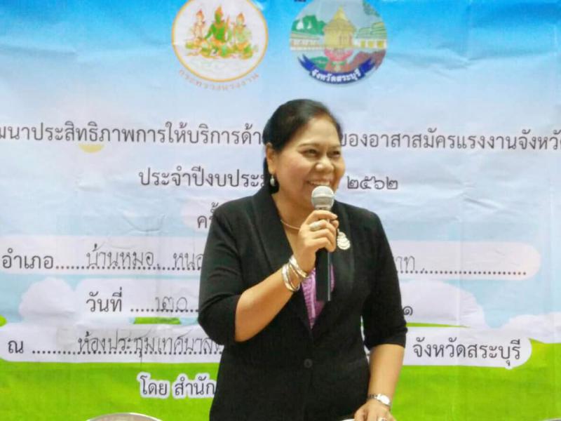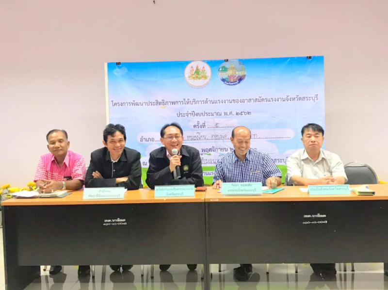 วันที่ 20 พฤศจิกายน 2561 สำนักงานแรงงานจังหวัดสระบุรีจัดประชุมอาสาสมัครแรงงานและเครือข่าย (สัญจร) ตามโครงการพัฒนาประสิทธิภาพการให้บริการด้านแรงงานของอาสาสมัครแรงงานจังหวัดสระบุรี ประจำปีงบประมาณ พ.ศ. 2562 ครั้งที่ 4 ณ ห้องประชุมเทศบาลตำบลบางโขมด อำเภอบ้านหมอ โดยมีอาสาสมัครแรงงานและเครือข่ายจาก 4 อำเภอ ได้แก่ อำเภอบ้านหมอ (9 ตำบล) อำเภอพระพุทธบาท (9 ตำบล) อำเภอหนองโดน (4 ตำบล) และอำเภอดอนพุด (4 ตำบล) ประธานชมรมอาสาสมัครแรงงานจังหวัดสระบุรี และเจ้าหน้าที่ที่เกี่ยวข้องเข้าร่วมประชุม จำนวน 54 คน เพื่อสร้างการรับรู้นโยบายเน้นหนักของกระทรวงแรงงาน ทำความเข้าใจชี้แจงภารกิจด้านแรงงานที่จะมอบหมายให้ดำเนินการในปีงบประมาณ พ.ศ. 2562 และการดำเนินกิจกรรมของชมรมฯ โดยมีนางสาวรัตนา ทองกลับ แรงงานจังหวัดสระบุรี ผู้แทนสำนักงานพัฒนาฝีมือแรงงาน ผู้แทนสำนักงานสวัสดิการคุ้มครองแรงงานจังหวัด และผู้แทนประกันสังคมจังหวัด ร่วมบรรยายให้ความรู้งานด้านต่างๆ ของแต่ละหน่วยงานที่จะให้อาสาสมัครแรงงานช่วยเผยแพร่ประชาสัมพันธ์เพื่อเป็นการสร้างความสัมพันธ์ที่ดีในการทำงานร่วมกันต่อไป