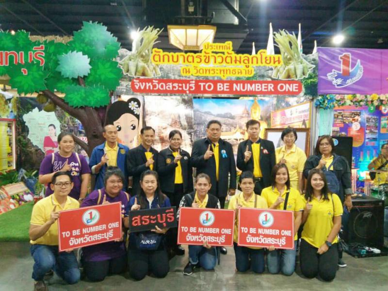 จังหวัดสระบุรีเข้าร่วมประกวด ชมรมจังหวัด TO BE NUMBER ONE ระดับประเทศ วันที่ 14 กรกฎาคม 2562 เวลา 09.30 น. นายแมนรัตน์ รัตนสุคนธ์ ผู้ว่าราชการจังหวัดสระบุรีนำทีมหัวหน้าส่วนราชการที่เกี่ยวข้อง ประกอบด้วย นายรุ่งฤทัย มวลประสิทธิ์พร นายแพทย์สาธารณสุขจังหวัดสระบุรี นางสาวรัตนา ทองกลับ แรงงานจังหวัดสระบุรี และนายวีระพงษ์ เดชบุญศึกษาธิการจังหวัดสระบุรี นำเสนอผลงานการดำเนินโครงการ TO BE NUMBER ONE ประเภทชมรมจังหวัด เพื่อรักษามาตรฐานพร้อมเป็นต้นแบบระดับเพชรปีที่ 3 ณ อิมแพคเมืองทองธานี