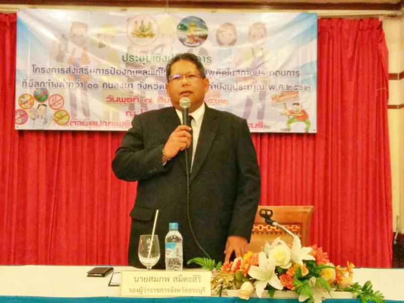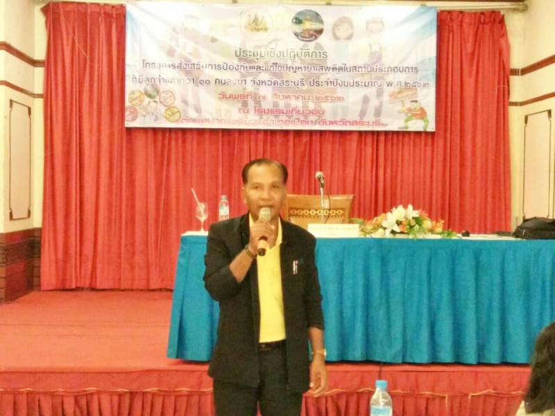วันที่ 7 สิงหาคม 2562 สำนักงานแรงงานจังหวัดสระบุรี จัดประชุมเชิงปฏิบัติการโครงการส่งเสริมการป้องกันและแก้ไขปัญหายาเสพติดในสถานประกอบการที่มีลูกจ้างต่ำกว่า 10 คนลงมา จังหวัดสระบุรี ประจำปีงบประมาณ พ.ศ. 2562 ณ โรงแรมเกี่ยวอัน ตำบลปากเพรียว อำเภอเมือง จังหวัดสระบุรี โดยมีนายสมภพ สมิตะสิริ รองผู้ว่าราชการจังหวัดสระบุรี เป็นประธานในพิธีเปิดการประชุมเชิงปฏิบัติการฯ ซึ่งมีผู้เข้าร่วมประชุมประกอบด้วย อาสาสมัครแรงงาน เครือข่ายอาสาสมัครแรงงาน นายจ้าง/ผู้แทนสถานประกอบการ พี่เลี้ยงอาสาสมัครแรงงานทั้ง 5 หน่วยงาน รวมทั้งสิ้น 130 คน
