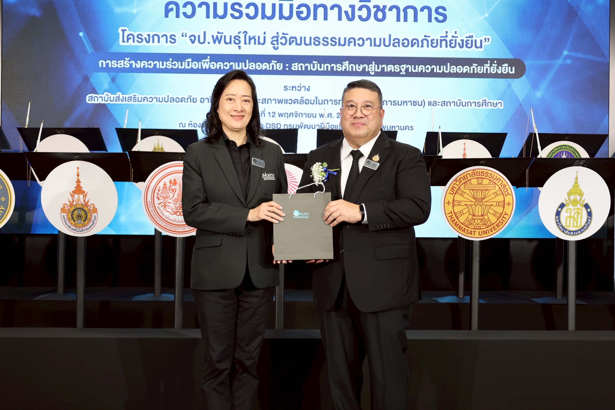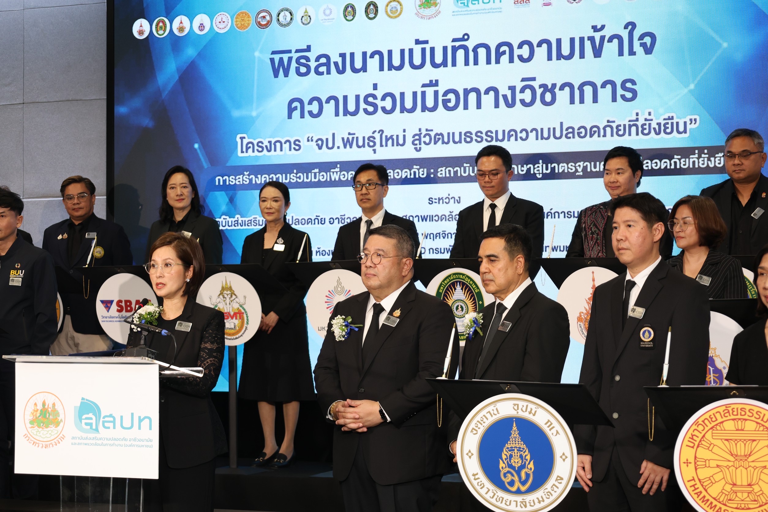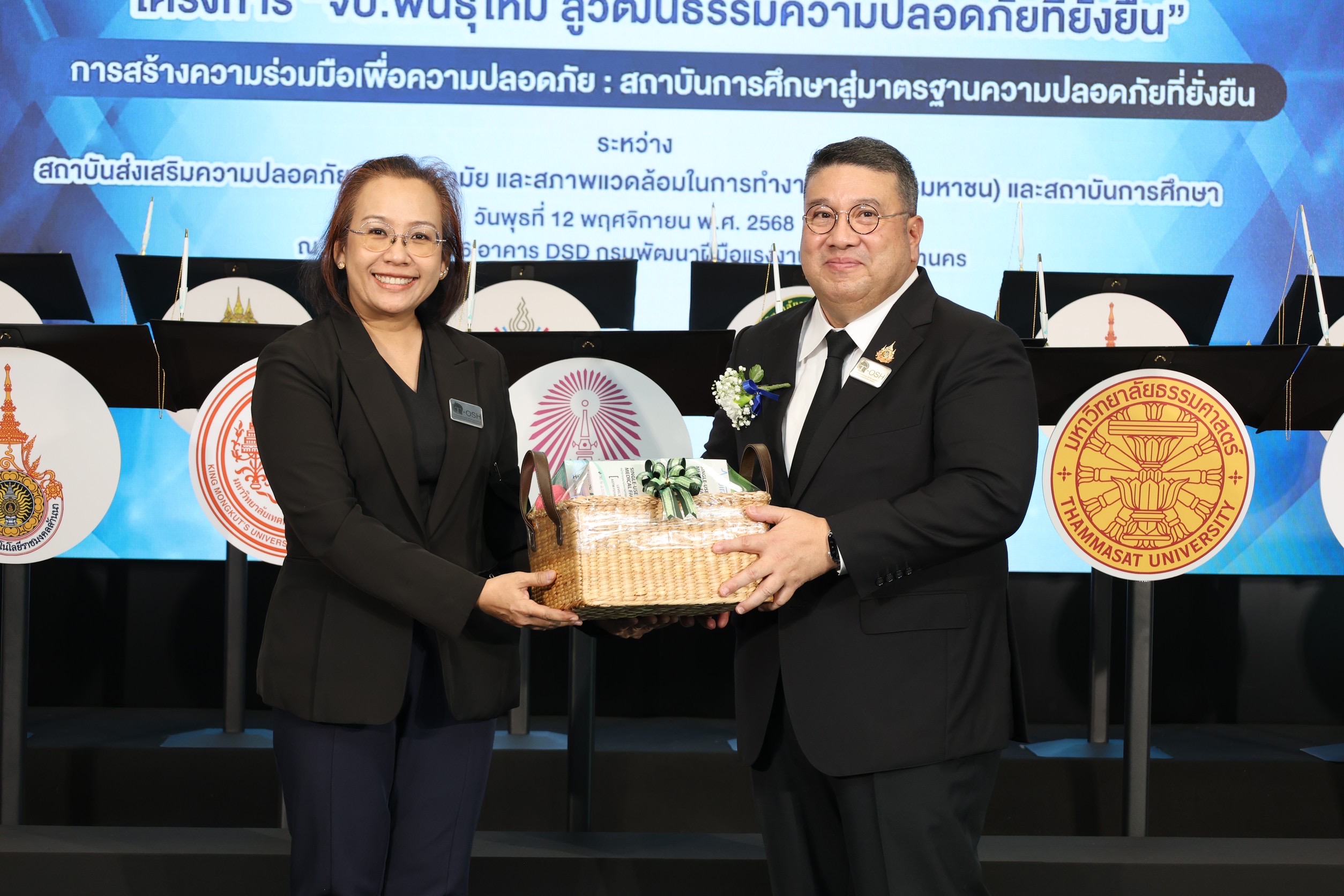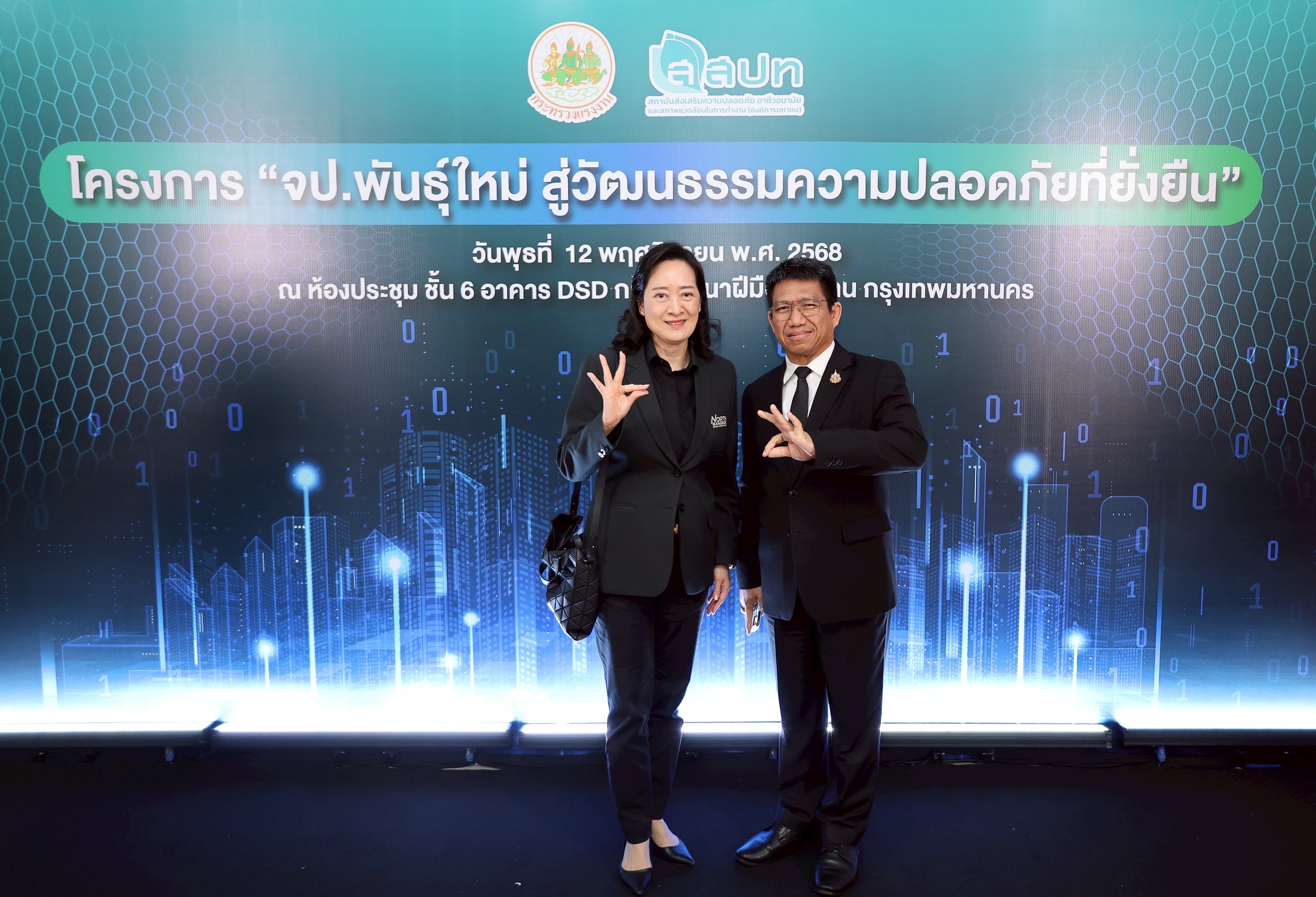 วันที่ 12 พฤศจิกายน 2568 สถาบันส่งเสริมความปลอดภัย อาชีวอนามัย และสภาพแวดล้อมในการทำงาน (องค์การมหาชน) จัดพิธีลงนามบันทึกความเข้าใจความร่วมมือทางวิชาการใน “โครงการ จป.พันธุ์ใหม่ สู่วัฒนธรรมความปลอดภัยที่ยั่งยืน” ร่วมกับสถาบันการศึกษาจากทั่วประเทศ โดยมี นางสาวตรีนุช เทียนทอง รัฐมนตรีว่าการกระทรวงแรงงาน เป็นประธานในพิธี พันตำรวจโท วรรณพงษ์ คชรักษ์ ปลัดกระทรวงแรงงาน พร้อมด้วย ผู้บริหารระดับสูงกระทรวงแรงงาน ร่วมเป็นเกียรติ ณ ห้องประชุมชั้น 6 อาคาร DSD กรมพัฒนาฝีมือแรงงาน กระทรวงแรงงาน