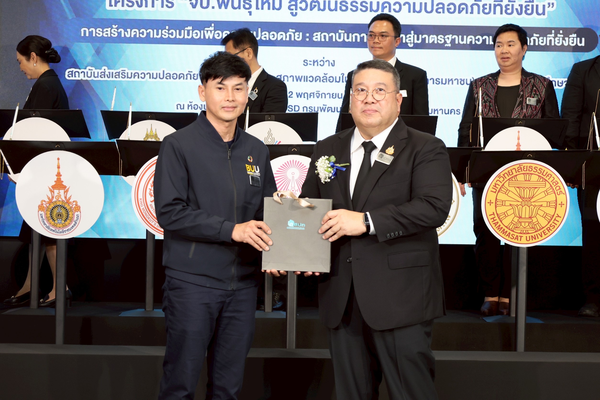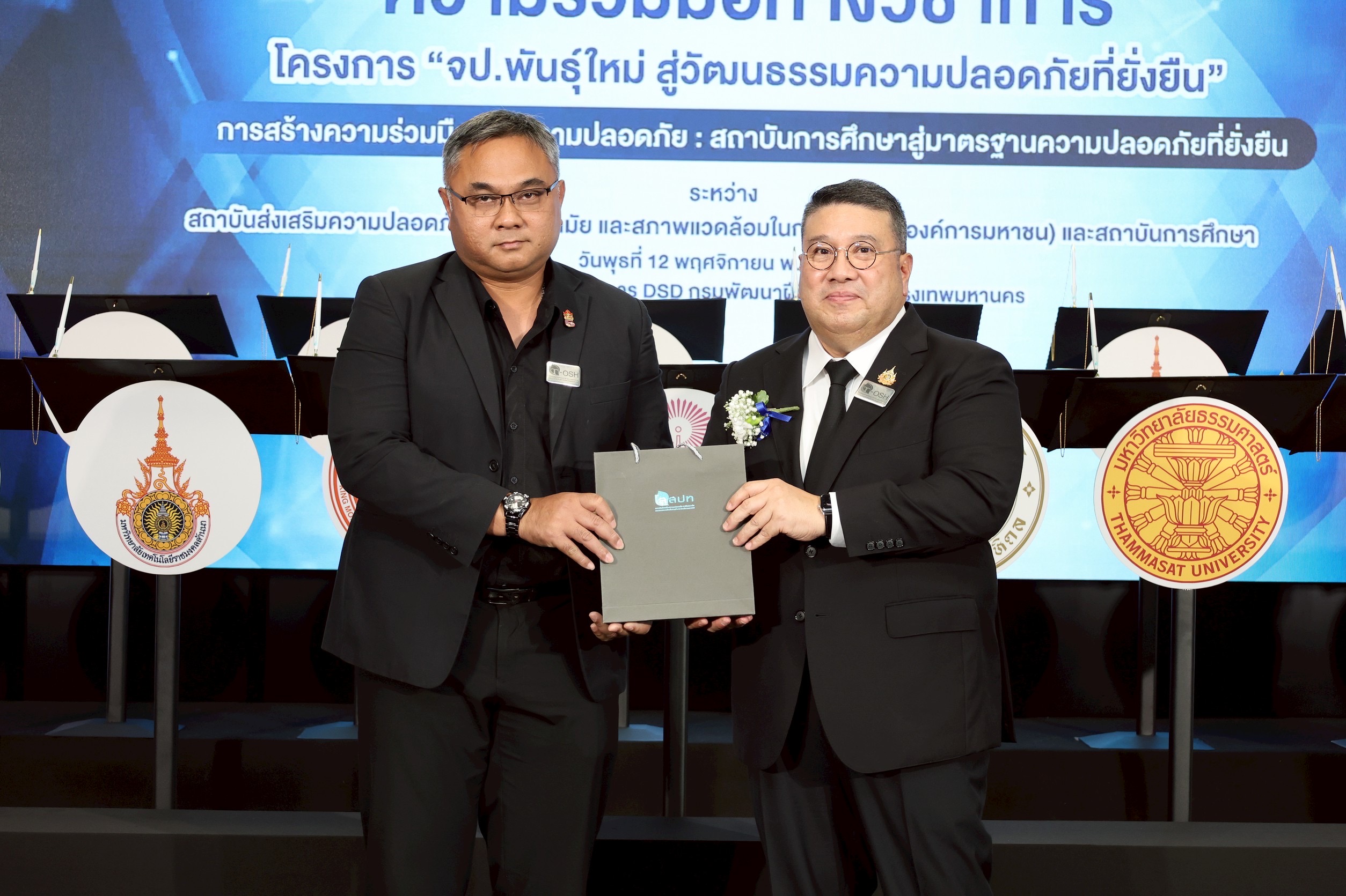 ด้าน ดร.นันทชัย ปัญญาสุรฤทธิ์ ผู้อำนวยการสถาบันส่งเสริมความปลอดภัย อาชีวอนามัยและสภาพแวดล้อม กล่าวเสริมว่า “สสปท. มีแนวคิดที่จะสร้างและพัฒนาเจ้าหน้าที่ความปลอดภัยในการทำงานรุ่นใหม่ คือ จป.พันธุ์ใหม่ ให้มีความรู้ ความสามารถ และทัศนคติที่ถูกต้องสำหรับการดำเนินงานด้านความปลอดภัยภายใต้แนวคิดหลัก ‘รู้ทัน ทำทัน สื่อสารทัน’ นอกจากนี้ สสปท. ยังพร้อมเป็นศูนย์กลางในการแลกเปลี่ยนองค์ความรู้ด้านความปลอดภัยในการทำงาน เช่น การฝึกอบรม การถ่ายทอดองค์ความรู้ รวมถึงการพัฒนามาตรฐานความปลอดภัยในสถาบันการศึกษา เพื่อให้เกิดผลลัพธ์ที่เป็นรูปธรรมทั้งในระดับบุคลากร นักศึกษา สถานศึกษา และสถานประกอบการที่นักศึกษาเข้าฝึกปฏิบัติงาน”