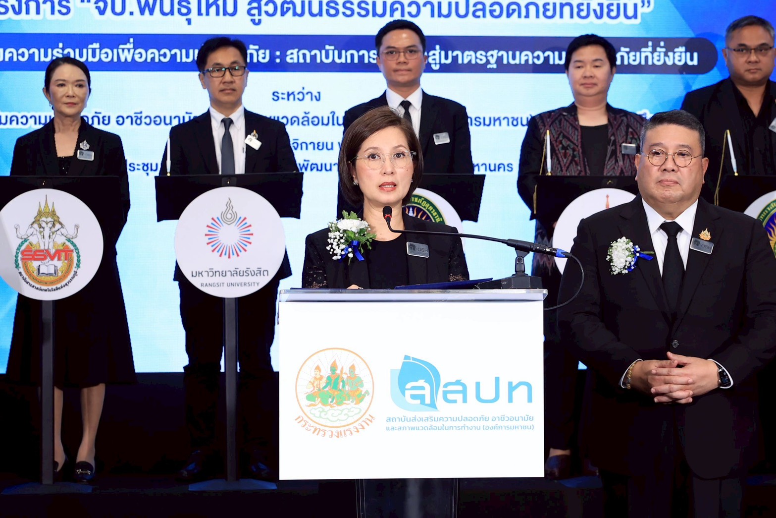 นางสาวตรีนุช เทียนทอง กล่าวว่า “ความปลอดภัยในการทำงานเป็นประเด็นสำคัญที่ภาครัฐให้ความสำคัญอย่างต่อเนื่อง เนื่องจากอุบัติเหตุจากการทำงานยังเกิดขึ้นในหลายภาคเศรษฐกิจ โดยเฉพาะในกลุ่มแรงงานใหม่ที่มักขาดประสบการณ์ การพัฒนา ‘วัฒนธรรมความปลอดภัยตั้งแต่ในสถานศึกษา’ จึงเป็นรากฐานสำคัญในการลดความเสี่ยงและสร้างคุณภาพแรงงานในระยะยาว และจะเป็นกำลังสำคัญในการเตรียมความของกำลังคนรุ่นใหม่ ให้มีความรู้และทักษะในการทำงานอย่างปลอดภัย เป็นระบบ และมีมาตรฐานเดียวกับภาคอุตสาหกรรม เราต้องการเห็นสถาบันการศึกษาเป็นแบบอย่างด้านความปลอดภัย เพื่อส่งต่อบุคลากรที่มีคุณภาพสู่ตลาดแรงงาน และลดความสูญเสียที่ไม่ควรเกิดขึ้น”