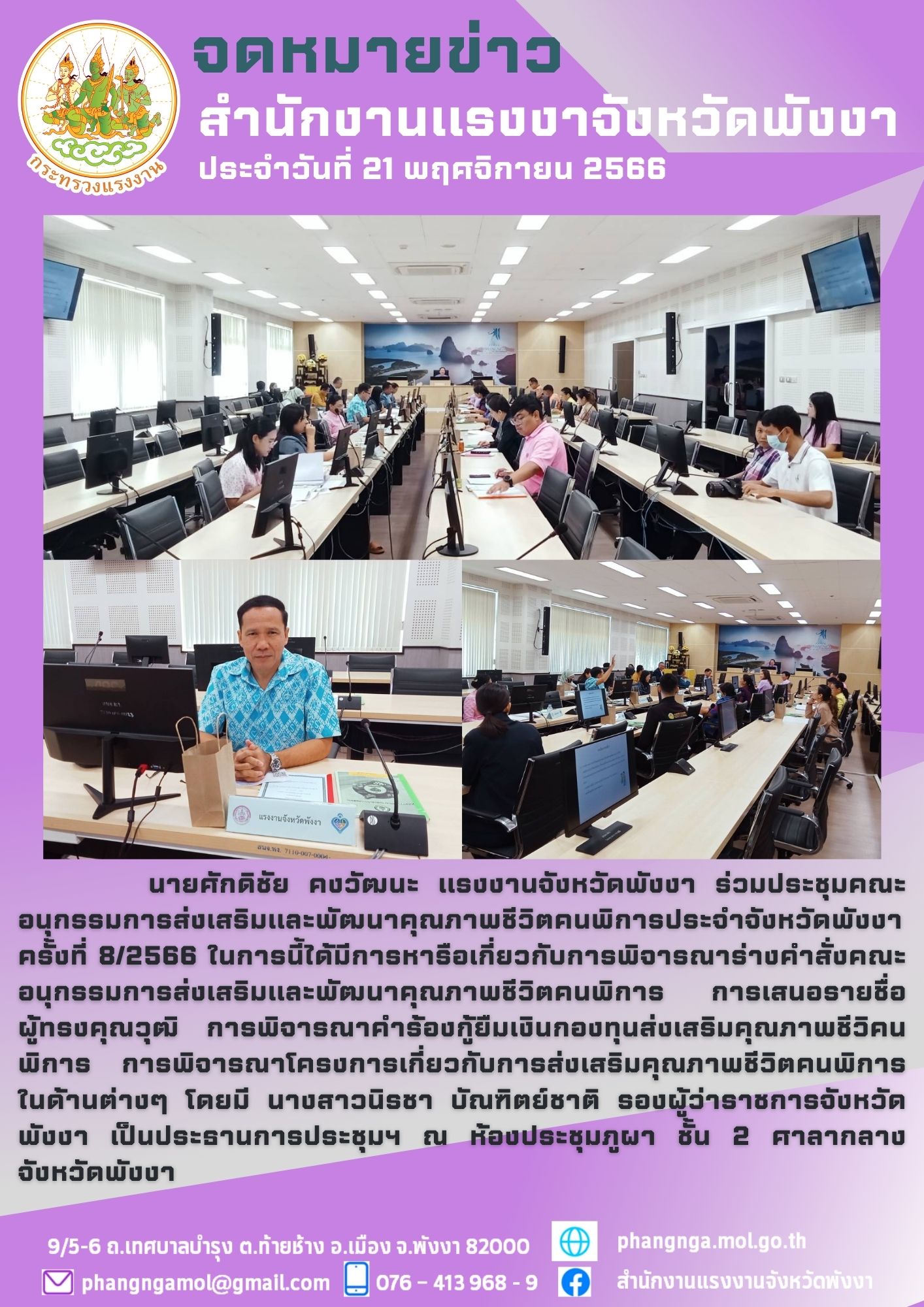 สรจ.พังงา ร่วมประชุมคณะอนุกรรมการส่งเสริมและพัฒนาคุณภาพชีวิตคนพิการประจำจังหวัดพังงา ครั้งที่ 8/2566