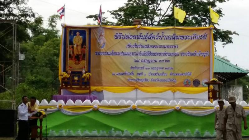 วันอังคารที่ 23 กรกฎาคม 2562 เวลา 09.00 น. นายอำนาจ เชิงไว แรงงานจังหวัดหนองบัวลำภูร่วมพิธีปล่อยพันธุ์สัตว์น้ำเฉลิมพระเกียรติเนื่องในวันเฉลิมพระชนมพรรษาพระบาทสมเด็จพระปรเมนทรรามาธิบดีศรีสินทรมหาวชิราลงกรณ พระวชิรเกล้าเจ้าอยู่หัว ณ แหล่งน้ำบึงงิ้ว หมู่ที่ 3 บ้านสร้างเสี่ยน ตำบลหนองบัวใต้ อำเภอศรีบุญเรือง จังหวัดหนองบัวลำภู โดย…นายเวียงชัย แก้วพินิจ รองผู้ว่าราชการจังหวัดหนองบัวลำภู เป็นประธานในพิธี