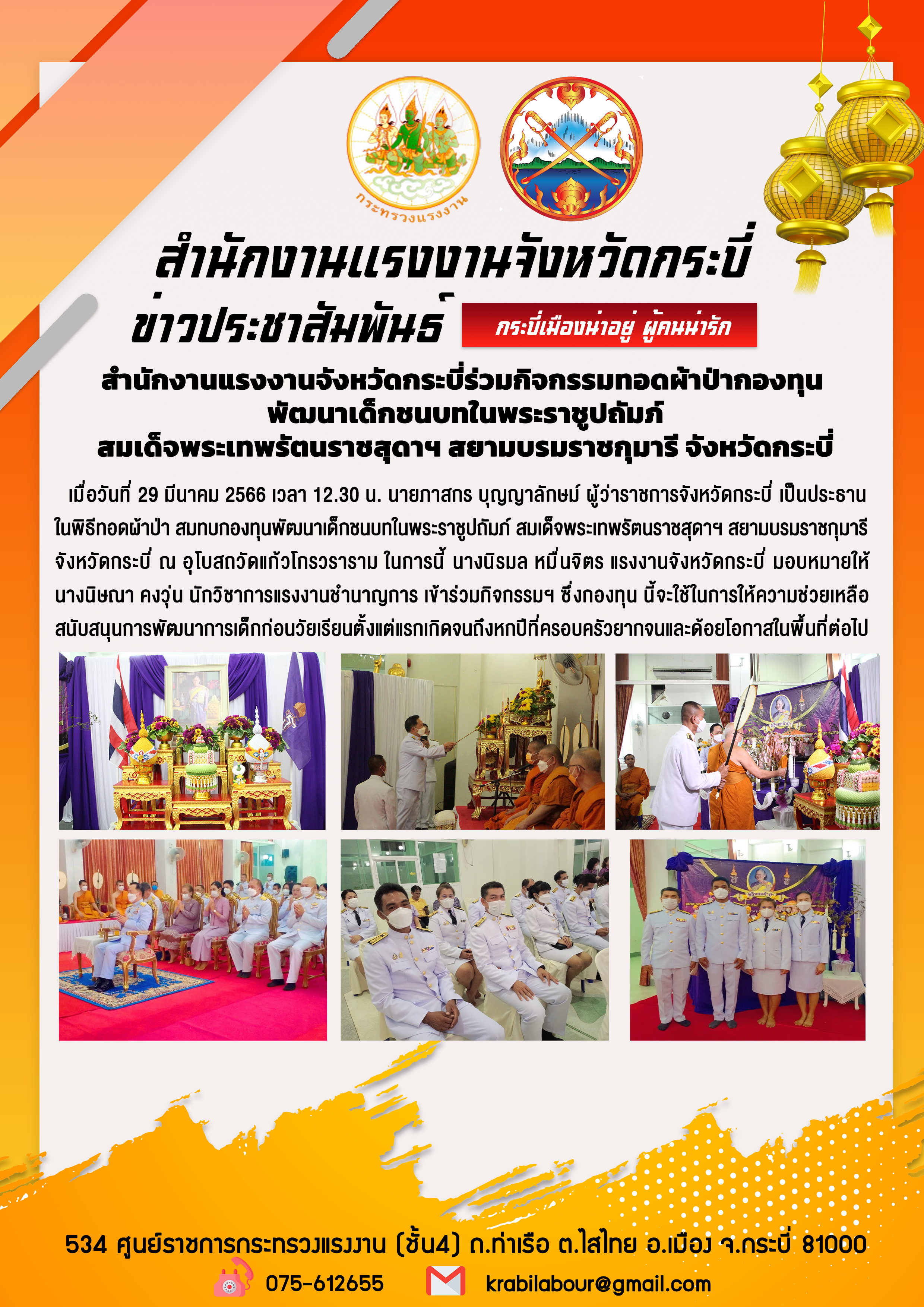 สรจ.กระบี่ ร่วมกิจกรรมทอดผ้าป่ากองทุน พัฒนาเด็กชนบทในพระราชูปถัมภ์ สมเด็จพระเทพรัตนราชสุดาฯ สยามบรมราชกุมารี จังหวัดกระบี่
