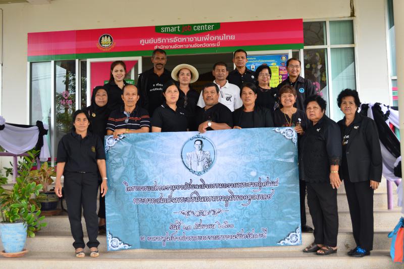 วันนี้ 21 กันยายน 2560 พันจ่าเอกไพฑูรย์ น่วมสวัสดิ์ แรงงานจังหวัดกระบี่ มอบหมายนางสาวอนงค์ สังข์ชุม นักวิชาการแรงงานปฏิบัติการ จัดโครงการแสดงความอาลัยและกิจกรรมถวายพระราชกุศลแด่พระบาทสมเด็จพระปรมินทรมหาภูมิพลอดุลยเดช โดยมีวัตถุประสงค์เพื่อให้เจ้าหน้าที่หน่วยงานสังกัดกระทรวงแรงงานจังหวัดกระบี่ อาสาสมัครแรงงาน ได้แสดงออกซึ่งความจงรักภักดี ความอาลัย และสำนึกในพระมหากรุณาธิคุณเป็นล้นพ้นหาที่สุดมิได้ของพระบาทสมเด็จพระปรมินทรมหาภูมิพลอดุลยเดช ณ อาคารศูนย์ราชการกระทรวงแรงงานจังหวัดกระบี่