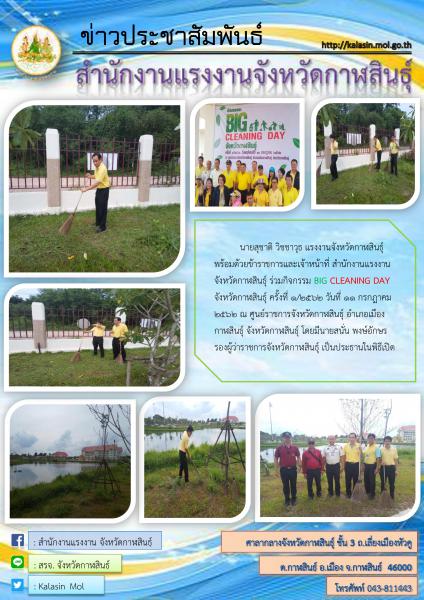 สำนักงานแรงงานจังหวัดกาฬสินธุ์ ร่วมกิจกรรม BIG CLEANING DAY จังหวัดกาฬสินธุ์ ครั้งที่ 1/2562 วันที่ 11 กรกฎาคม 2562 ณ ศูนย์ราชการจังหวัดกาฬสินธุ์ อำเภอเมืองกาฬสินธุ์ จังหวัดกาฬสินธุ์