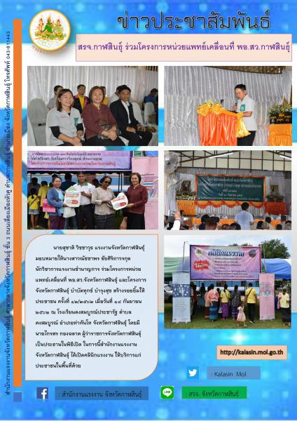 สำนักงานแรงงานจังหวัดกาฬสินธุ์ ร่วมโครงการหน่วยแพทย์เคลื่อนที่ พอ.สว.จังหวัดกาฬสินธุ์ และโครงการจังหวัดกาฬสินธุ์ บำบัดทุกข์ บำรุงสุข สร้างรอยยิ้มให้ประชาชน ครั้งที่ 12/2562 ณ โรงเรียนดงสมบูรณ์ประชารัฐ ตำบลดงสมบูรณ์ อำเภอท่าคันโท จังกวัดกาฬสินธุ์