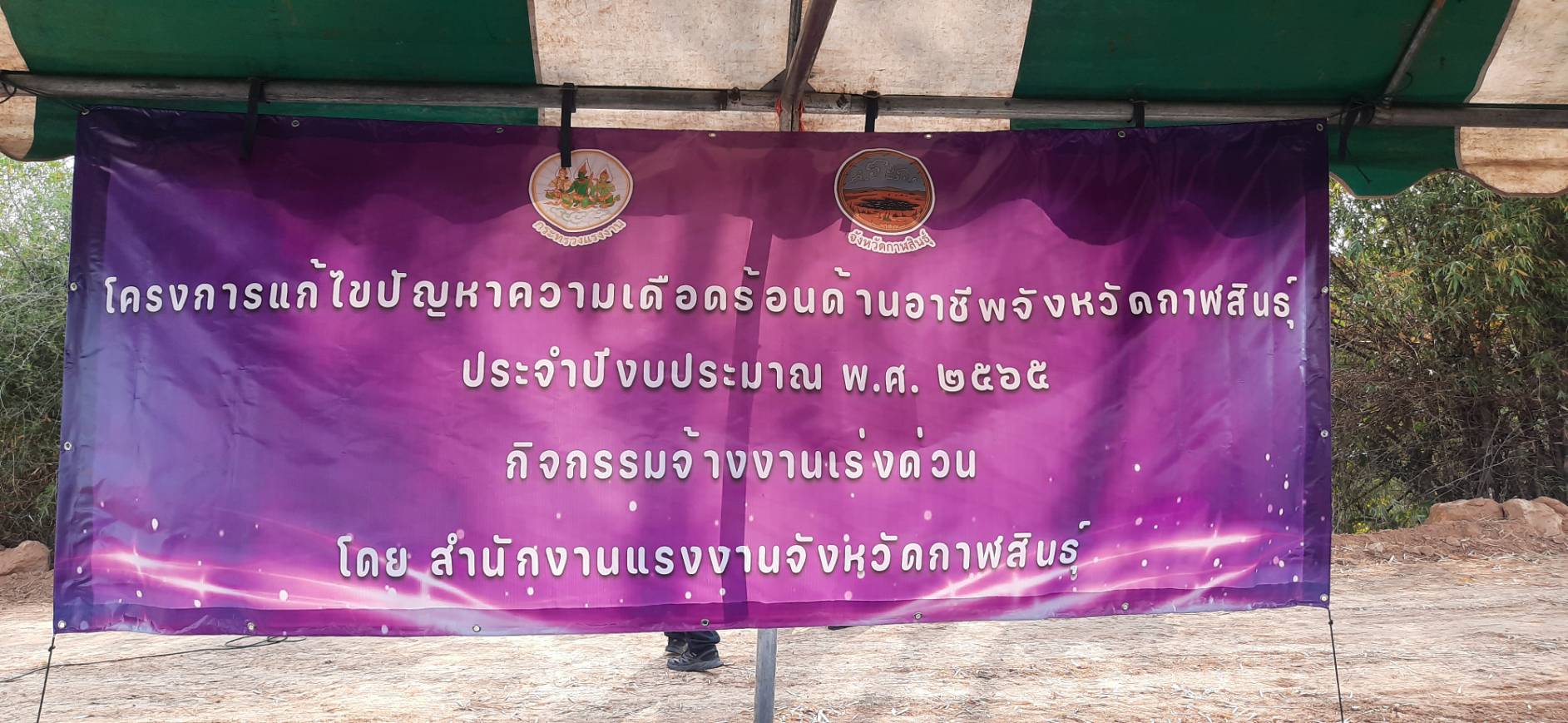 วันพุธที่ 2 กุมภาพันธ์ พ.ศ. 2565 สำนักงานแรงงานจังหวัดกาฬสินธุ์ โดยนางพนิดา เสถียรจิตร แรงงานจังหวัดกาฬสินธุ์ มอบหมายนายเสมือน ศรีพอ นักวิชาการแรงงานชำนาญการ (เป็นประธาน) และเจ้าหน้าที่สำนักงานแรงงานจังหวัดกาฬสินธุ์ เปิด ”โครงการแก้ไขปัญหาความเดือดร้อนด้านอาชีพ กิจกรรมจ้างงานเร่งด่วนและพัฒนาทักษะฝีมือเพื่อบรรเทาความเดือดร้อนด้านอาชีพ จังหวัดกาฬสินธุ์ ประจำปีงบประมาณ พ.ศ.2565” กิจกรรมจ้างงานเร่งด่วน จำนวน 2 กิจกรรม ดังนี้