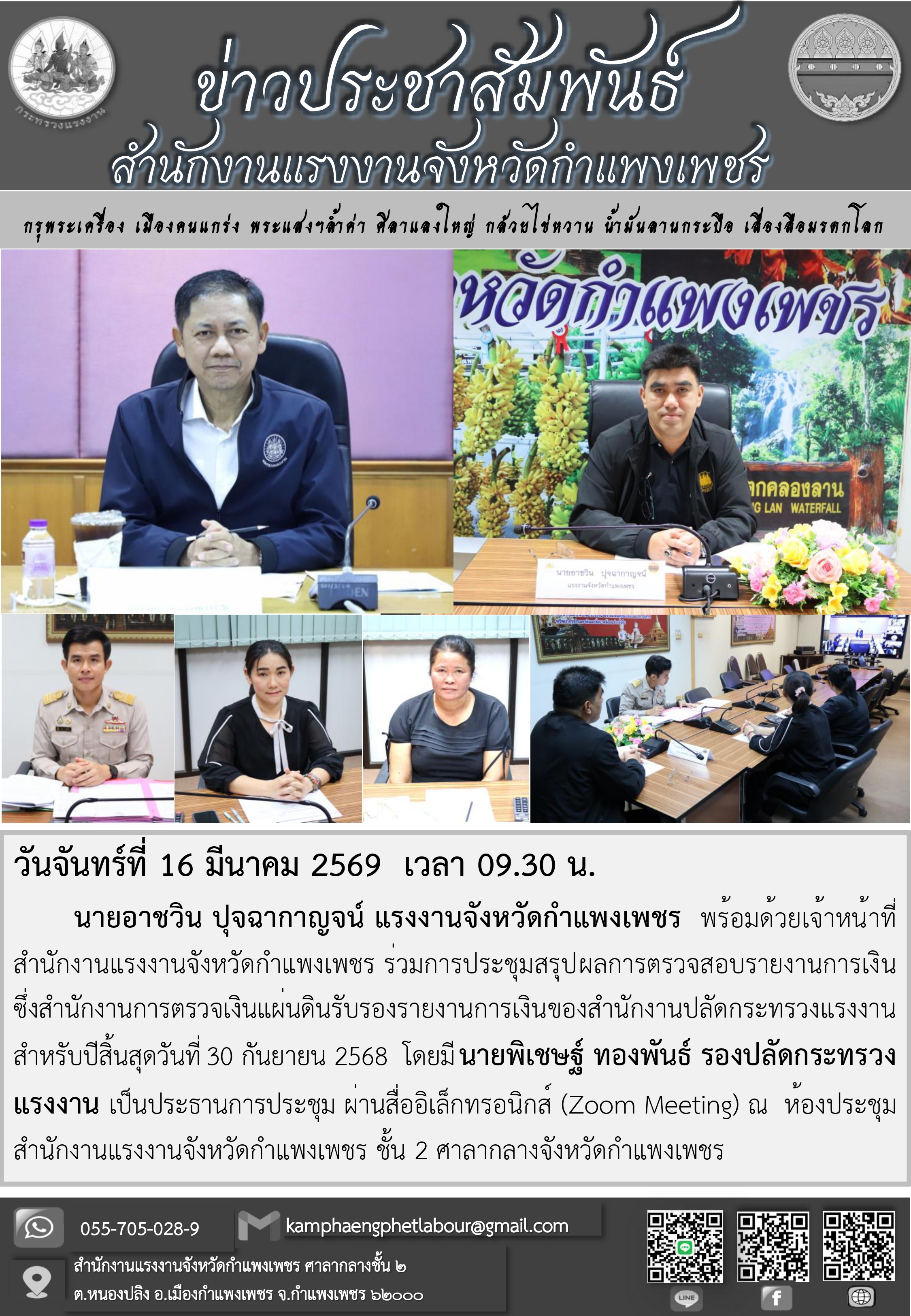 สำนักงานแรงงานจังหวัดกำแพงเพชร ร่วมการประชุมสรุปผลการตรวจสอบรายงานการเงินของสำนักงานปลัดกระทรวงแรงงาน