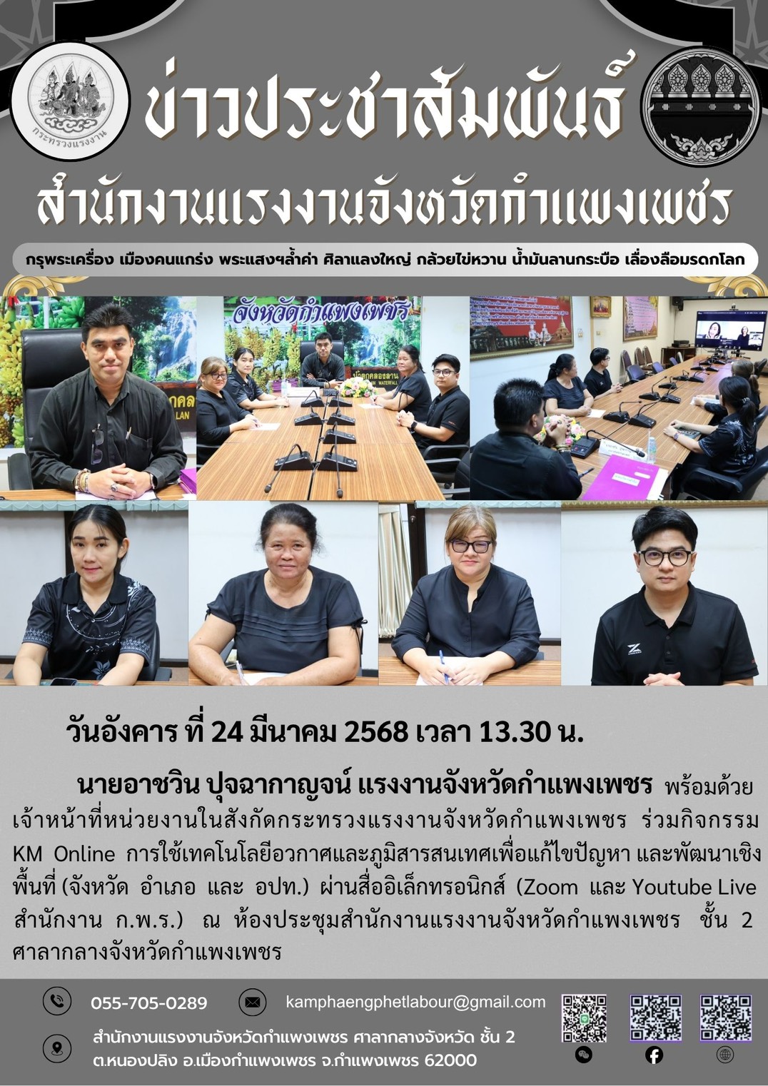 สำนักงานแรงงานจังหวัดกำแพงเพชร ร่วมกิจกรรม km online การใช้เทคโนโลยีอวกาศ และภูมิสารสนเทศเพื่อแก้ไขปัญหาและพัฒนาเชิงพื้นที่