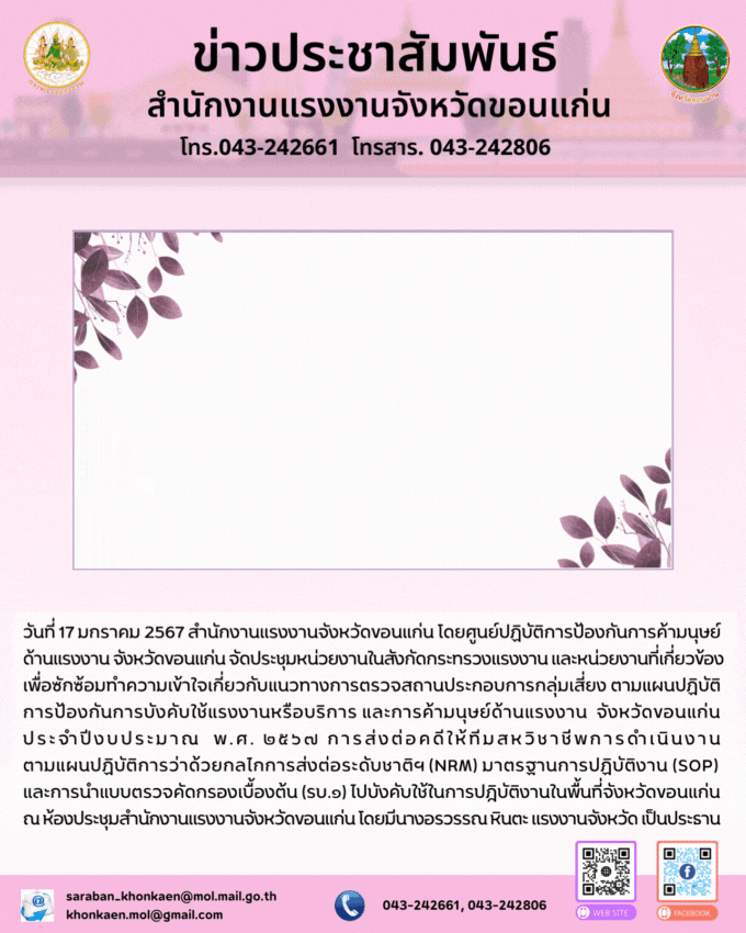 สรจ.ขอนแก่น จัดประชุมหน่วยงานในสังกัดกระทรวงแรงงาน โดยศูนย์ปฏิบัติการป้องกันการค้ามนุษย์ด้านแรงงาน จังหวัดขอนแก่น