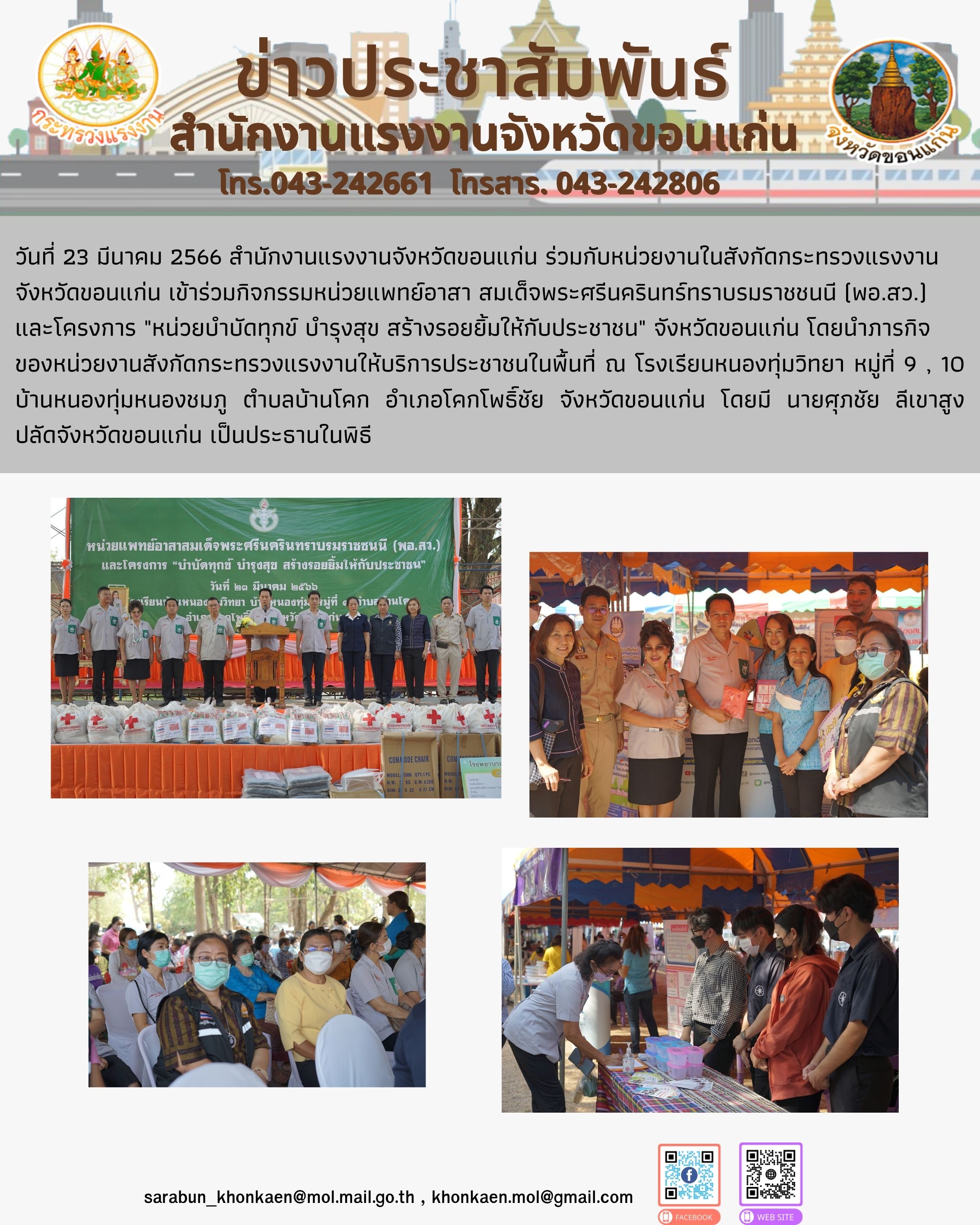 สรจ.ขอนแก่น ร่วมกับหน่วยงานในสังกัดกระทรวงแรงงาน จังหวัดขอนแก่น เข้าร่วมกิจกรรมหน่วยแพทย์อาสา