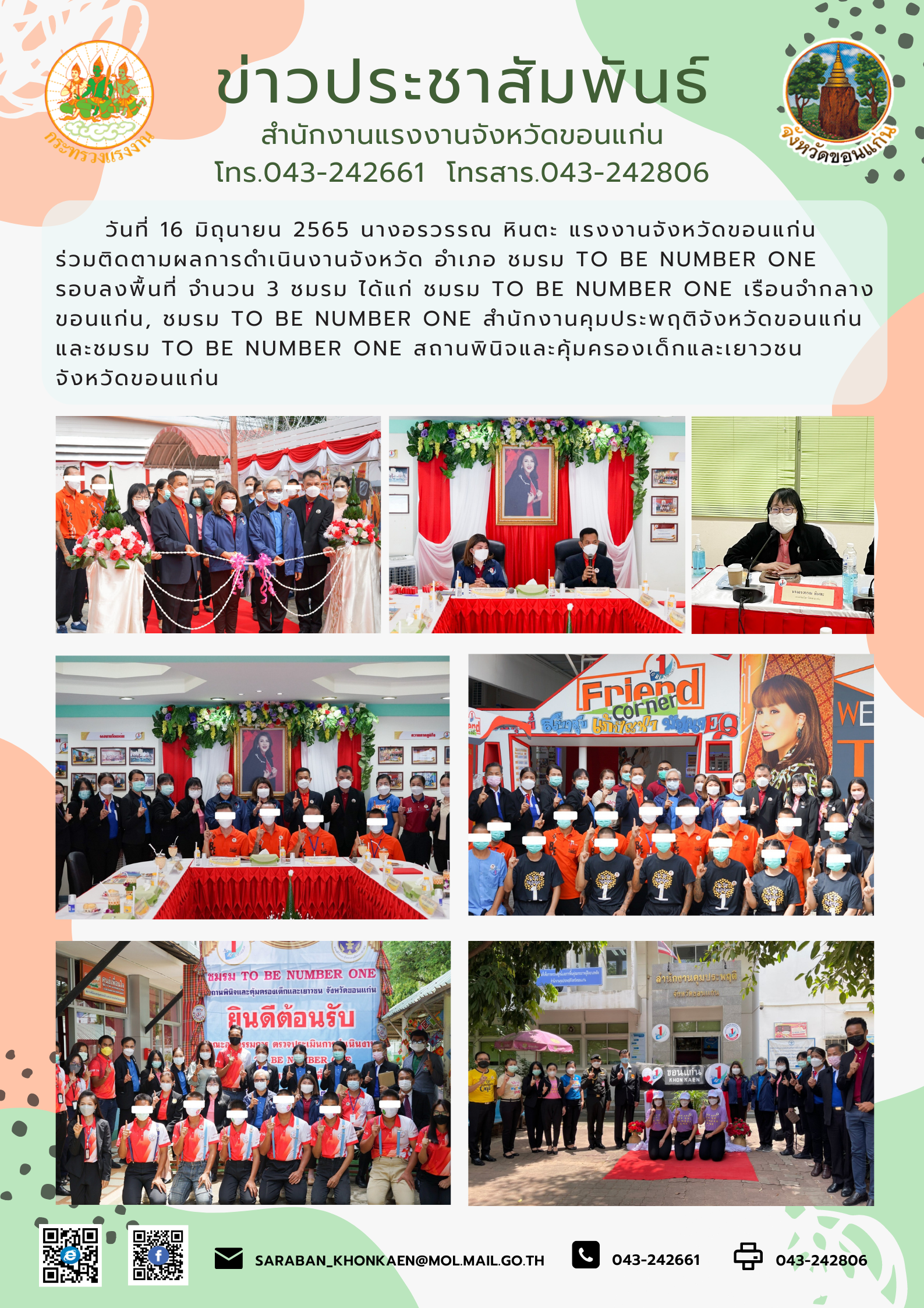 สำนักงานแรงงานจังหวัดขอนแก่น ร่วมติดตามผลการดำเนินงานจังหวัด อำเภอ ชมรม TO BE NUMBER ONE