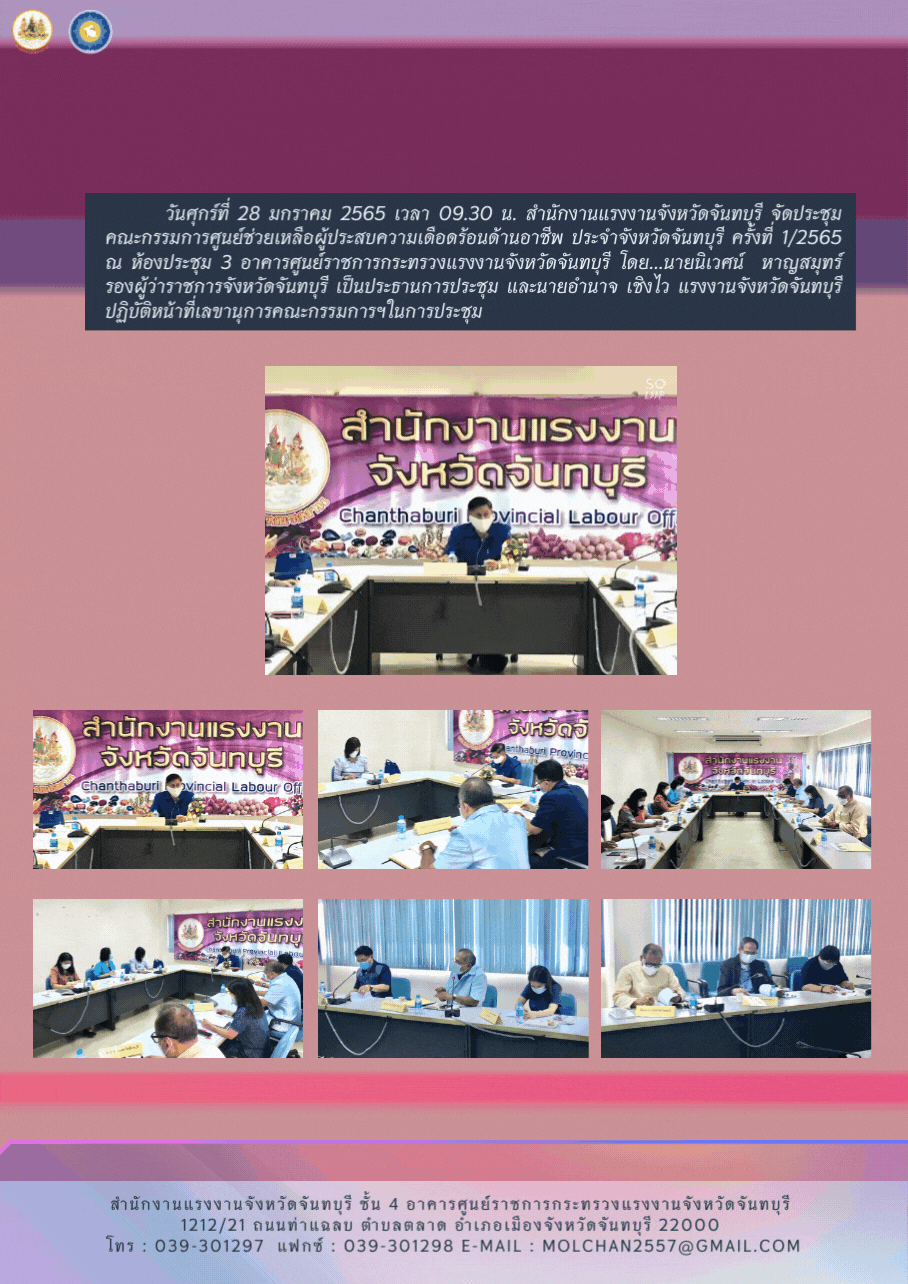 สำนักงานแรงงานจังหวัดจันทบุรี จัดประชุมคณะกรรมการศูนย์ช่วยเหลือผู้ประสบความเดือดร้อนด้านอาชีพ ประจำจังหวัดจันทบุรี