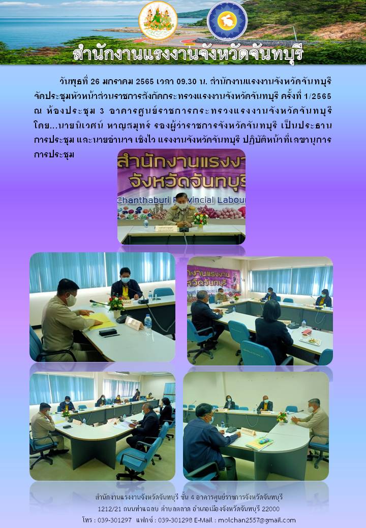 สำนักงานแรงงานจังหวัดจันทบุรี จัดประชุมหัวหน้าส่วนราชการสังกัดกระทรวงแรงงานจังหวัดจันทบุรี ครั้งที่ 1/2565