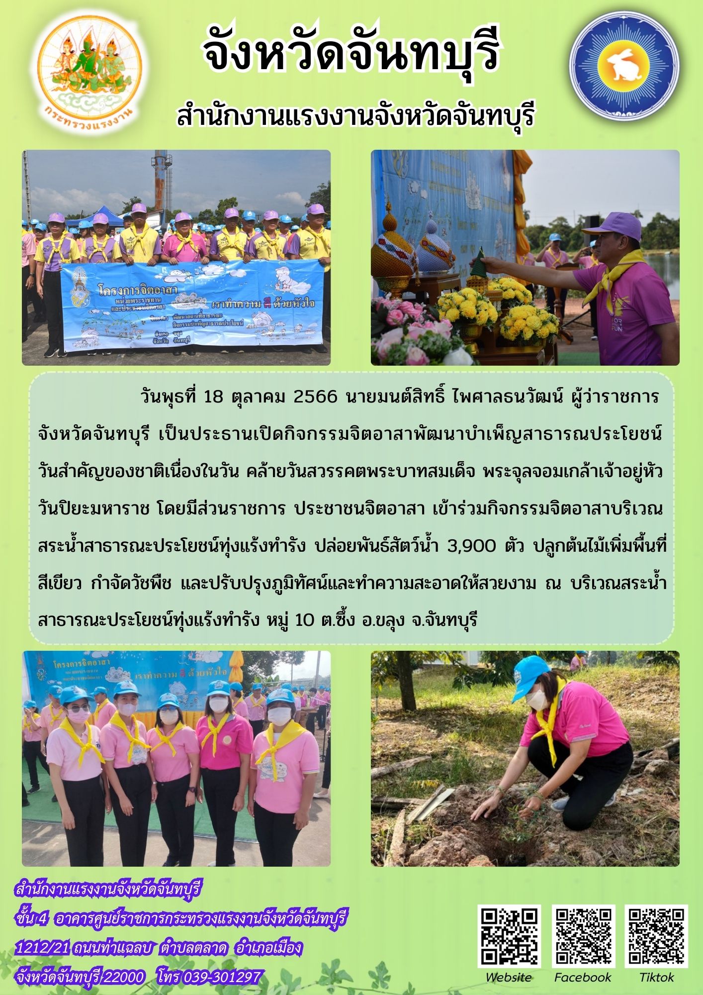 สรจ.จันทบุรี ร่วมกิจกรรมจิตอาสาพัฒนาบำเพ็ญสาธารณประโยชน์ เนื่องในวันคล้ายวันสวรรคตพระบาทสมเด็จ พระจุลจอมเกล้าเจ้าอยู่หัว วันปิยะมหาราช