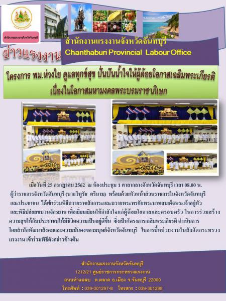 สำนักงานแรงงานจังหวัดจันทบุรี ร่วมโครงการ พม.ห่วงใย ดูแลทุกข์สุข ปั่นปันน้ำใจผู้ด้อยโอกาสเฉลิมพระเกียรติ เนื่องในดอกาสมหามงคลพระบรมราชาภิเษก