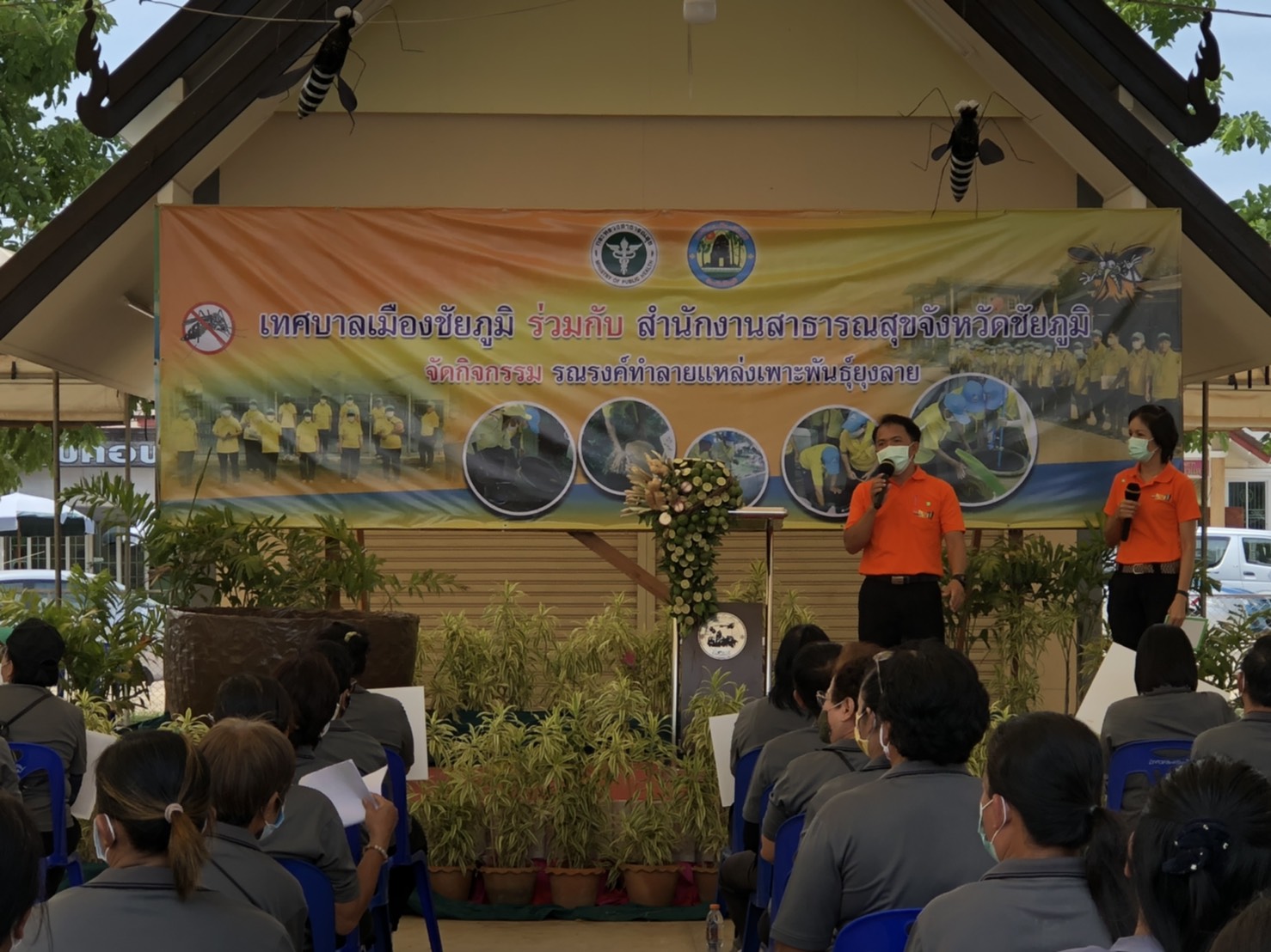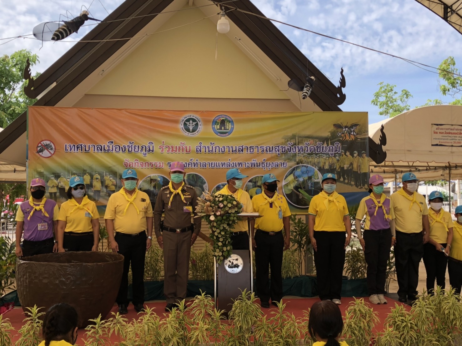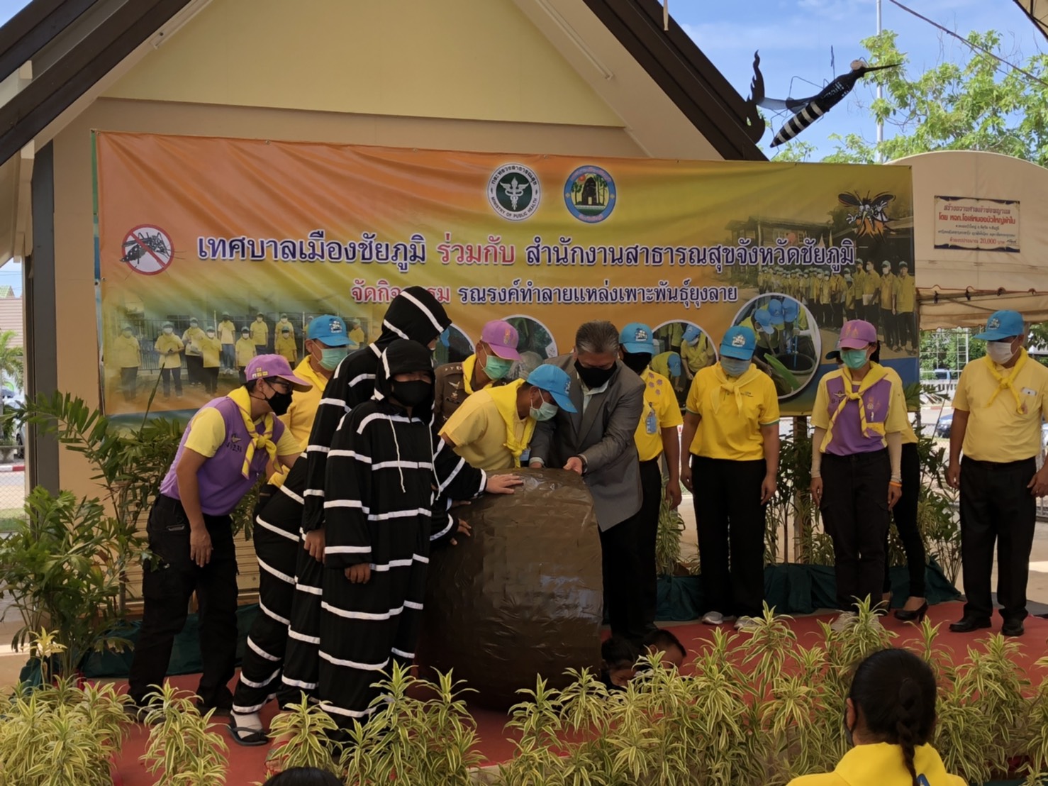 วันพฤหัสบดีที่ 28 พฤษภาคม 2563 เวลา 09.00 น.นายอำนาจ เชิงไว แรงงานจังหวัดชัยภูมิ มอบหมายให้นางสาววันเพ็ญ เฉลียวชาติ นักวิชาการแรงงานชำนาญการ ร่วมกิจกรรมรณรงค์ทำลายแหล่งเพาะพันธุ์ยุงลาย โดยมีนายราชันย์ ซุ้นหั้ว รองผู้ว่าราชการจังหวัดชัยภูมิ เป็นประธาน