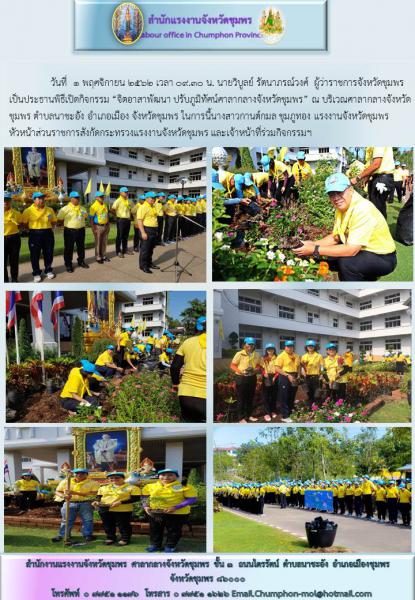สำนักงานแรงงานจังหวัดชุมพร จัดกิจกรรม “จิตอาสาพัฒนา ปรับภูมิทัศน์ศาลากลางจังหวัดชุมพร” ณ บริเวณศาลากลางจังหวัดชุมพร อำเภอเมือง จังหวัดชุมพร