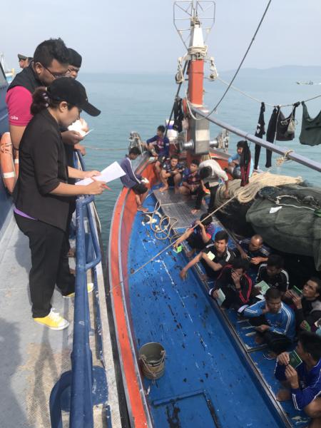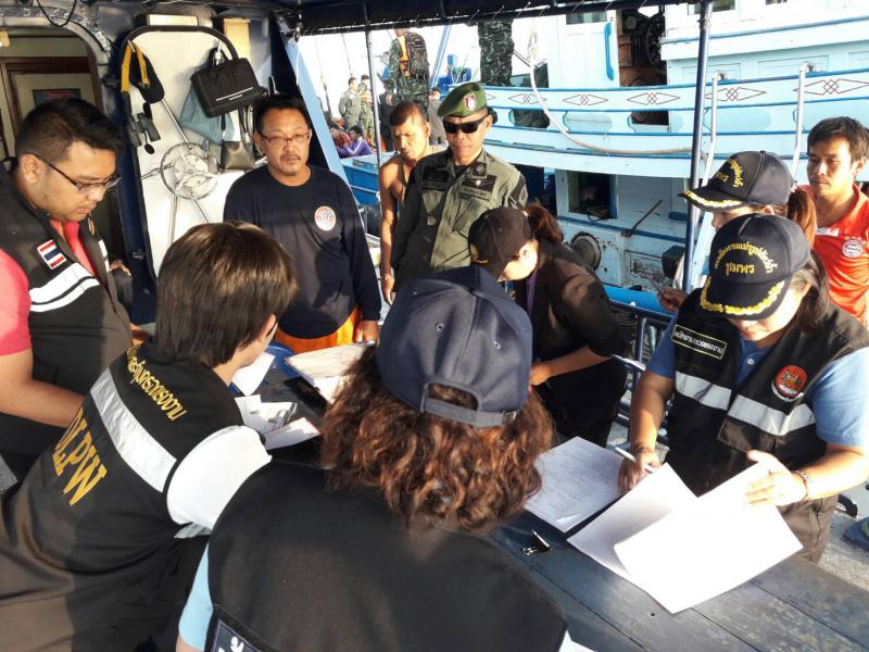 วันที่ 5 มกราคม 2561 เวลา 07.00 น. นางสาวกานต์กมล ชุมภูทอง แรงงานจังหวัดชุมพร มอบหมายนางสุกาญจนา สอนสุทธิ์ เจ้าพนักงานการเงินและบัญชีชำนาญงาน ร่วมกับคณะทำงานบูรณาการความร่วมมือในการตรวจคุ้มครองแรงงานและการค้ามนุษย์ด้านแรงงานในกิจการประมงทะเลและกิจการที่เกี่ยวเนื่อง ได้ตรวจบูรณาการฯ เรือประมง บริเวณปากน้ำชุมพร เรือผ่านการตรวจ จำนวน 8 ลำ ลูกจ้างรวม 131 คน จำแนกเป็นสัญชาติไทย 18 คน เมียนมาร์ 113 คน ผลการตรวจฯไม่พบการกระทำความผิดตาม พ.ร.ก.การประมง พ.ศ. 2558 พ.ร.บ.ว่าด้วยการเดินเรือในน่านน้ำไทยฯ พ.ร.บ.คุ้มครองแรงงาน พ.ศ. 2541 พ.ร.บ.การทำงานของคนต่างด้าว พ.ศ. 2551 พ.ร.บ.ป้องกันและปราบปรามการค้ามนุษย์ พ.ศ. 2551 ไม่มีการใช้แรงงานเด็กอายุต่ำกว่า 18 ปี ไม่มีการค้ามนุษย์ด้านแรงงาน และไม่พบการบังคับใช้แรงงาน