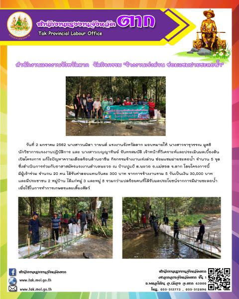 สำนักงานแรงงานจังหวัดตาก จัดกิจกรรม "จ้างงานเร่งด่วน ซ่อมแซมฝายชะลอน้ำ"