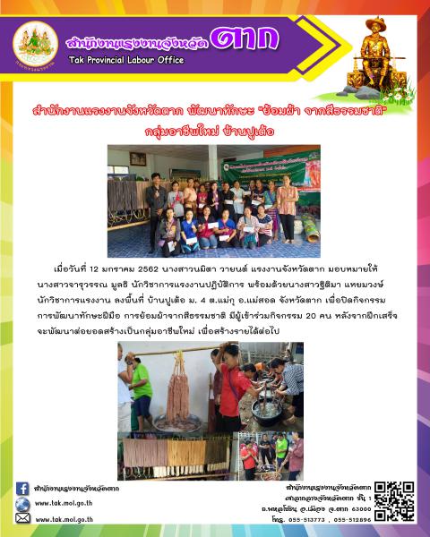 สำนักงานแรงงานจังหวัดตาก พัฒนาทักษะ "ย้อมผ้า จากสีธรรมชาติ" กลุ่มอาชีพใหม่ บ้านปูเต้อ