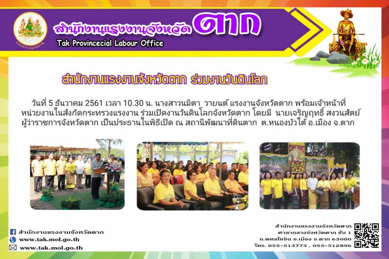 สำนักงานแรงงานจังหวัดตาก ร่วมงานวันดินโลก