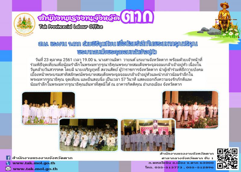 สำนักงานแรงงานจังหวัดตาก ร่วมพิธีจุดเทียนเพื่อน้อมรำลึกในพระมหากรุณาธิคุณพระบาทสมเด็จพระจุลจอมเกล้าเจ้าอยู่หัว