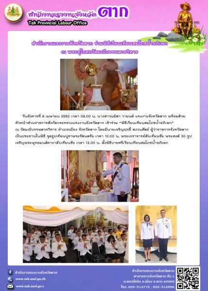 สำนักงานแรงงานจังหวัดตาก ร่วมพิธีเวียนเทียนสมโภชน้ำอภิเษก ณ พระอุโบสถวัดมณีบรรพตวรวิหาร
